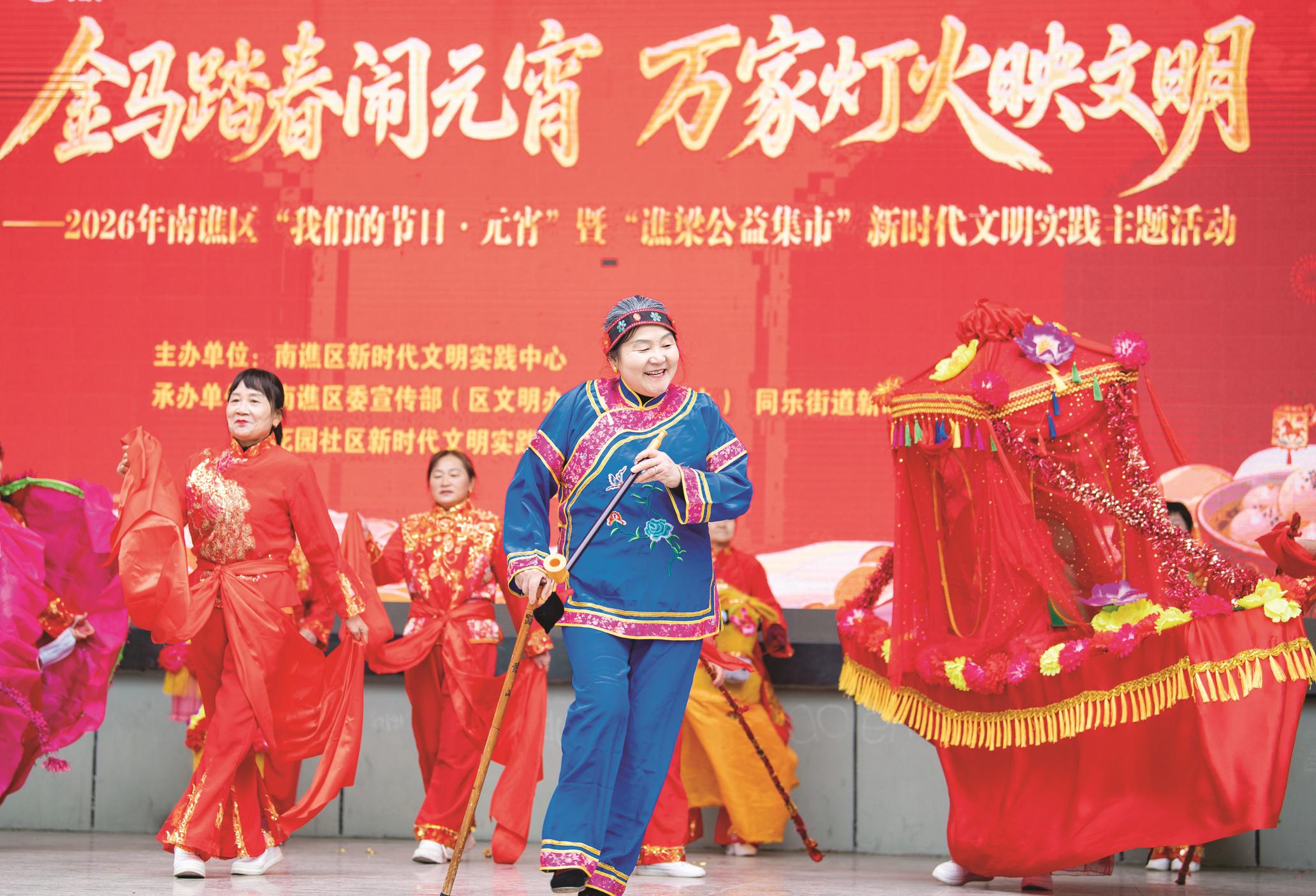 3月3日,文艺志愿者现场表演旱船。丁婉毓摄