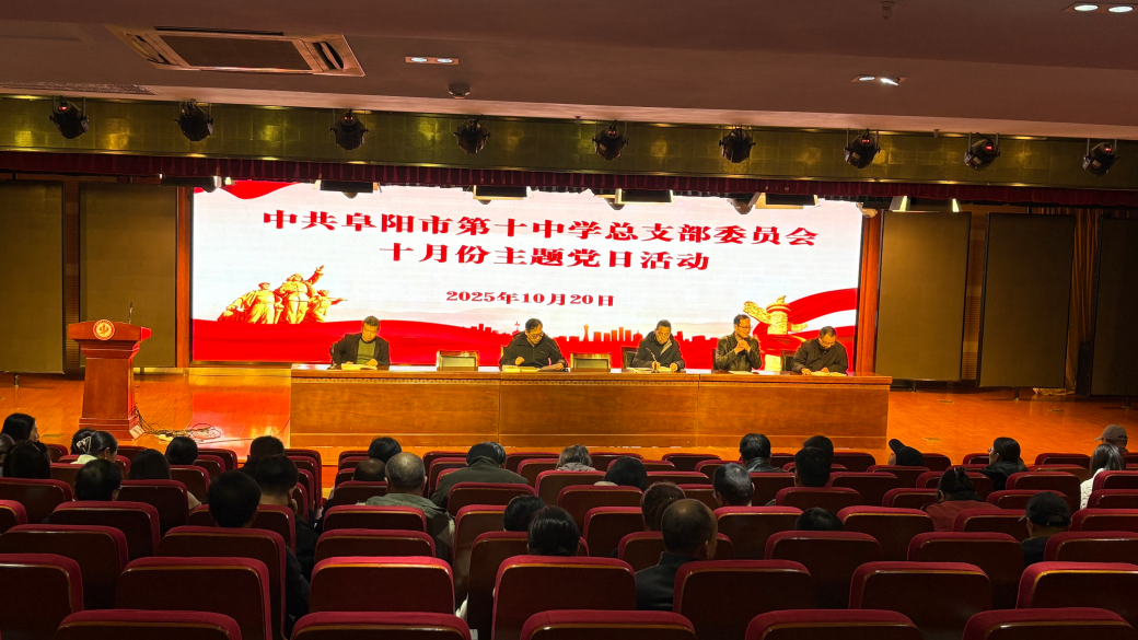 10月20日下午,阜阳十中党总支在岳家湖校区韶华厅开展十月份主题党日活动,全体党员以“学思想、正师德、践使命”为主线,扎实推进理论学习与师德建设。