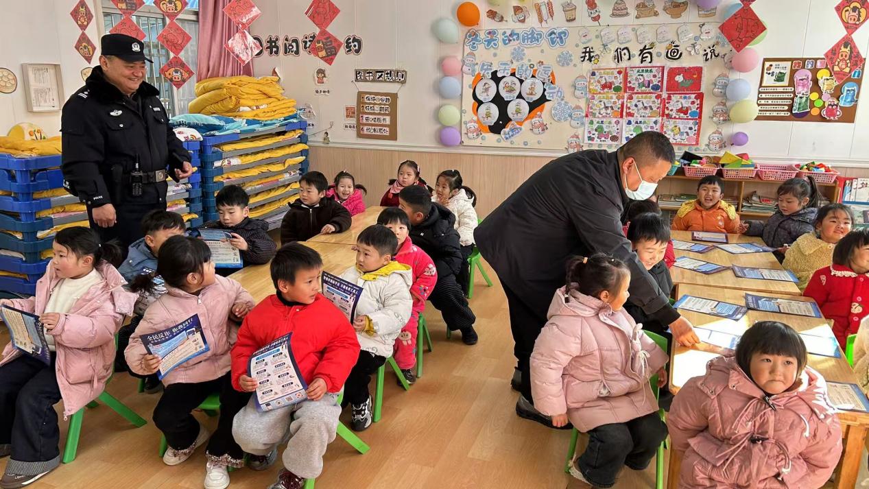 近日,太和县城关镇复兴路社区联合城南派出所,在国泰路幼儿园开展防范网络电信诈骗宣传活动。