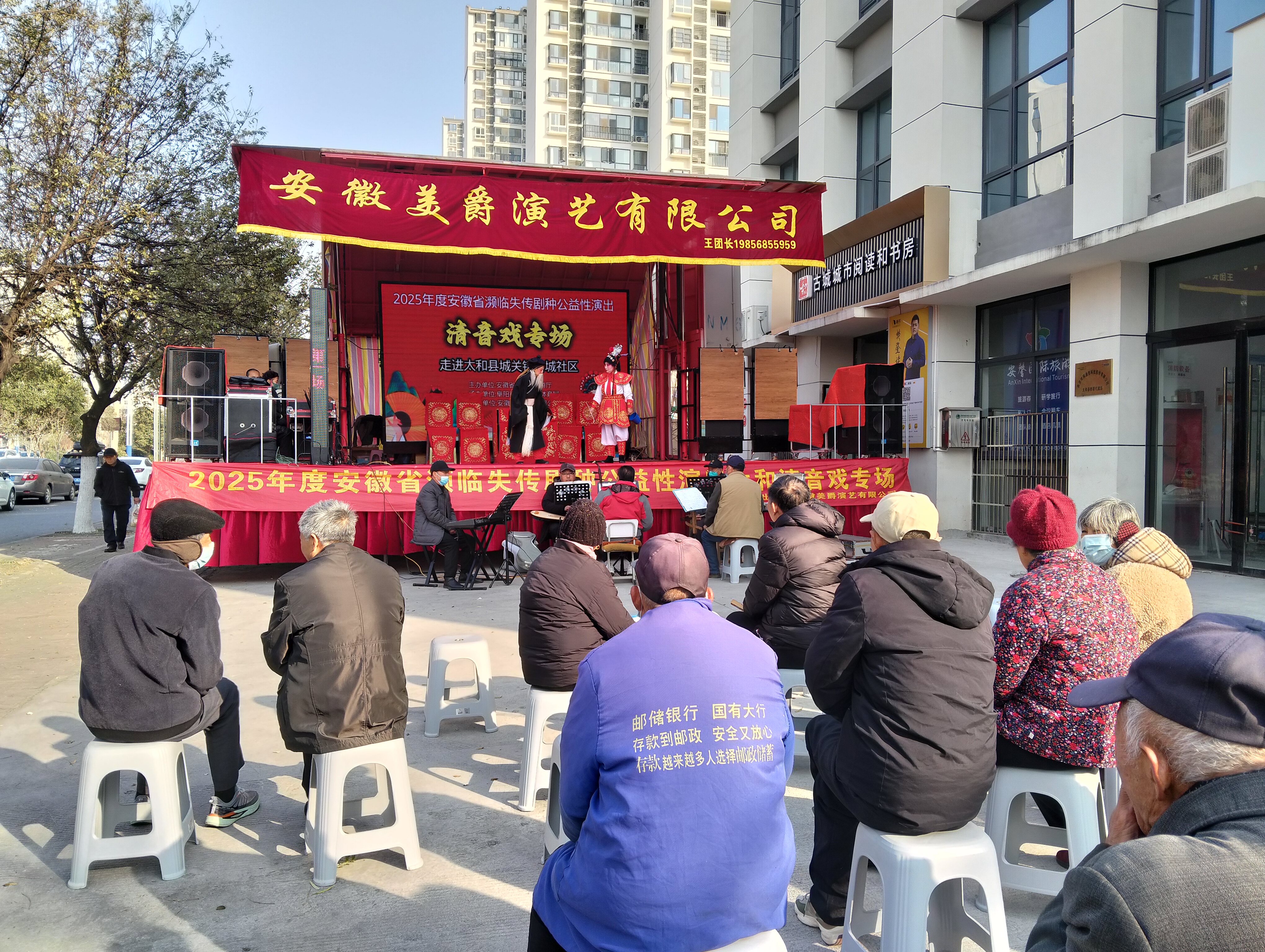12月11日,太和县城关镇古城社区关工委联合安徽美爵演艺有限公司,在社区综合文化中心广场开展非遗清音戏公益专场演出,为辖区居民尤其是老年群体带来了一场精彩的文化盛宴。