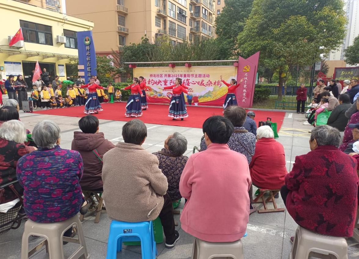 桥北社区开展“舞韵映重阳,稚心暖桑榆”活动