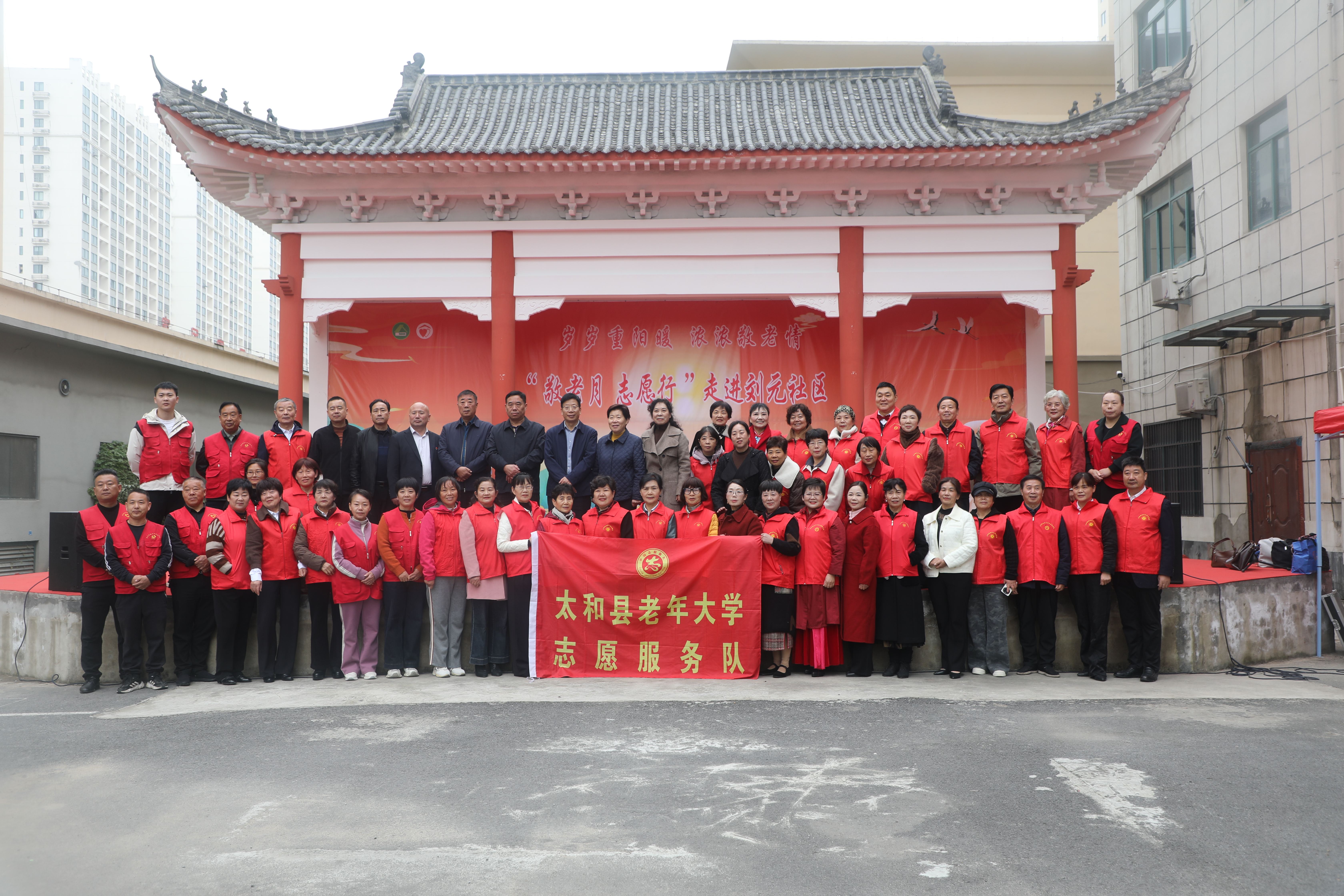 10月29日,太和县城关镇桥北社区于在社区志愿者广场举办了“九九重阳节”主题庆祝活动。