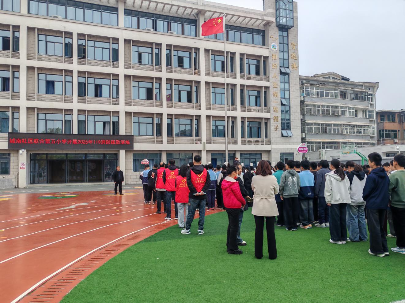 水上社区联合沙河路小学开展119消防应急疏散演练
