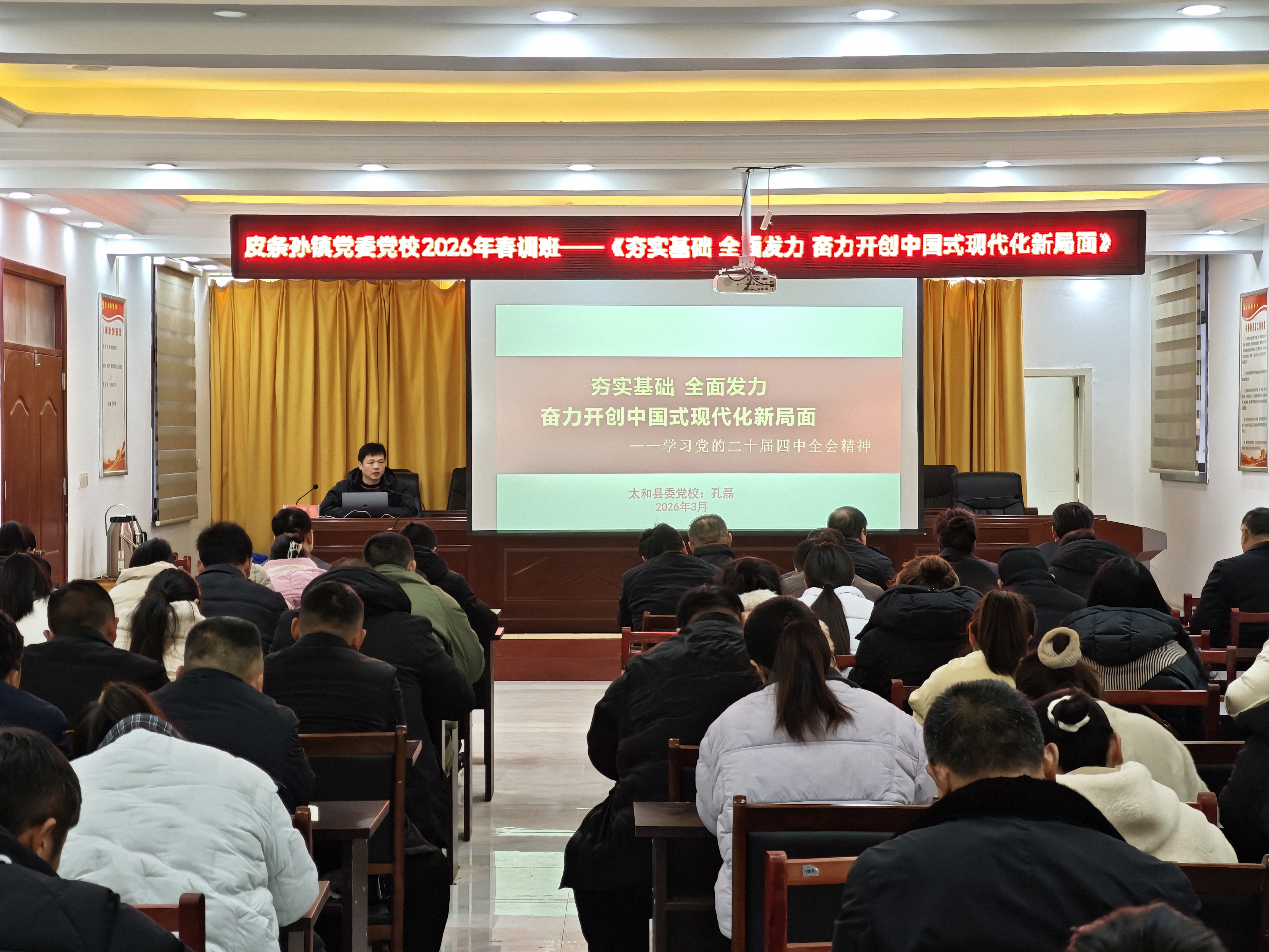 2月27日至3月1日,太和县皮条孙镇党委举办镇村干部春季培训会。全镇镇村干部集中参训,通过“专题授课+分组研讨”模式,完成为期3天的集中学习充电。
