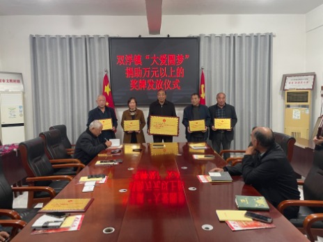10月17日上午,太和县双浮镇“大爱圆梦”捐助万元以上奖牌发放仪式在镇小会议室举行,对“大爱圆梦”关爱行动中的先进单位和个人进行表彰。