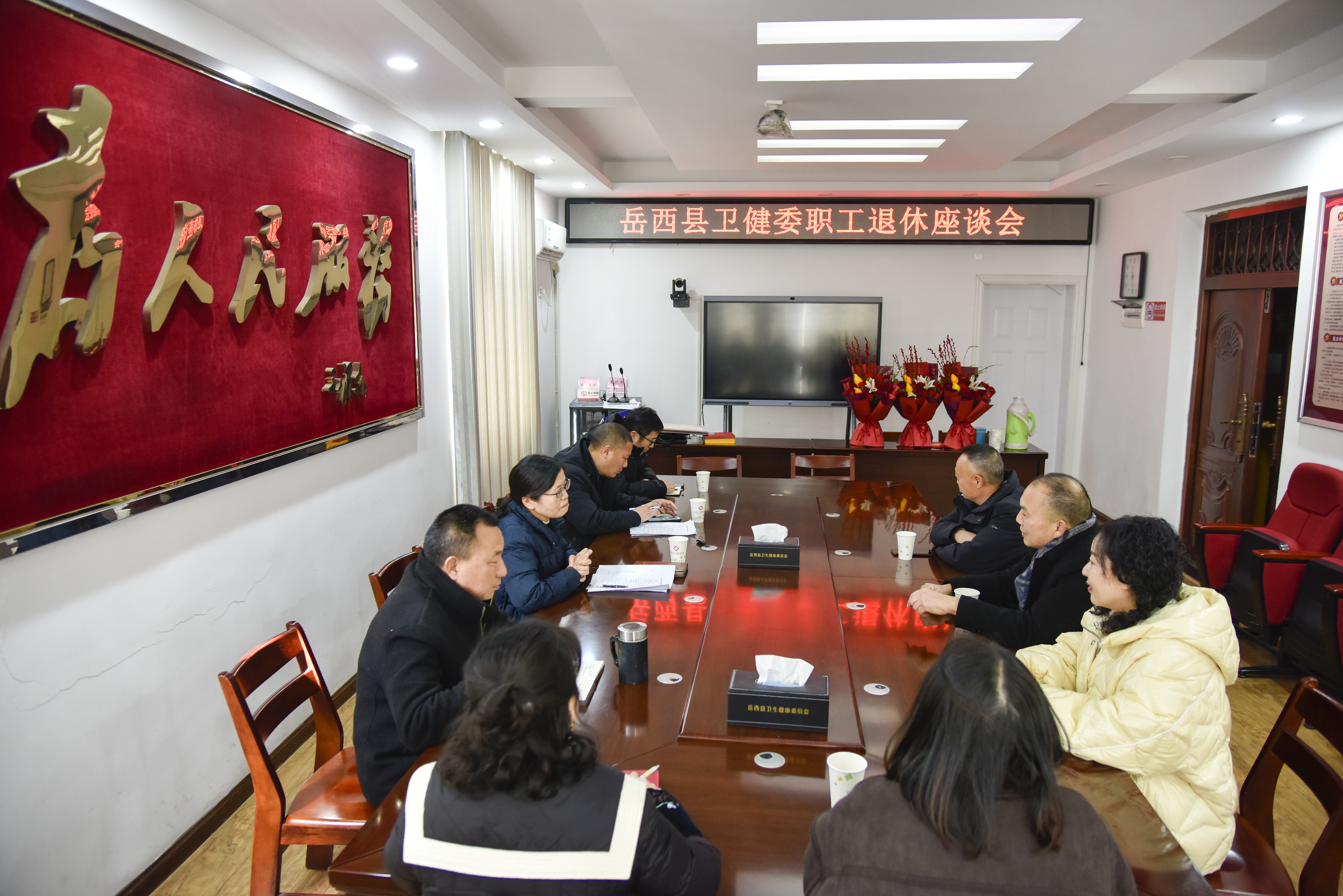 近日,岳西县卫健委举行温馨庄重的荣誉退休座谈会,深情欢送祝得意、祝方霞、曾嵘三位同志光荣退休。委领导班子成员、相关股室负责人及部分干部职工代表齐聚一堂,共忆峥嵘岁月,共话卫健 ...