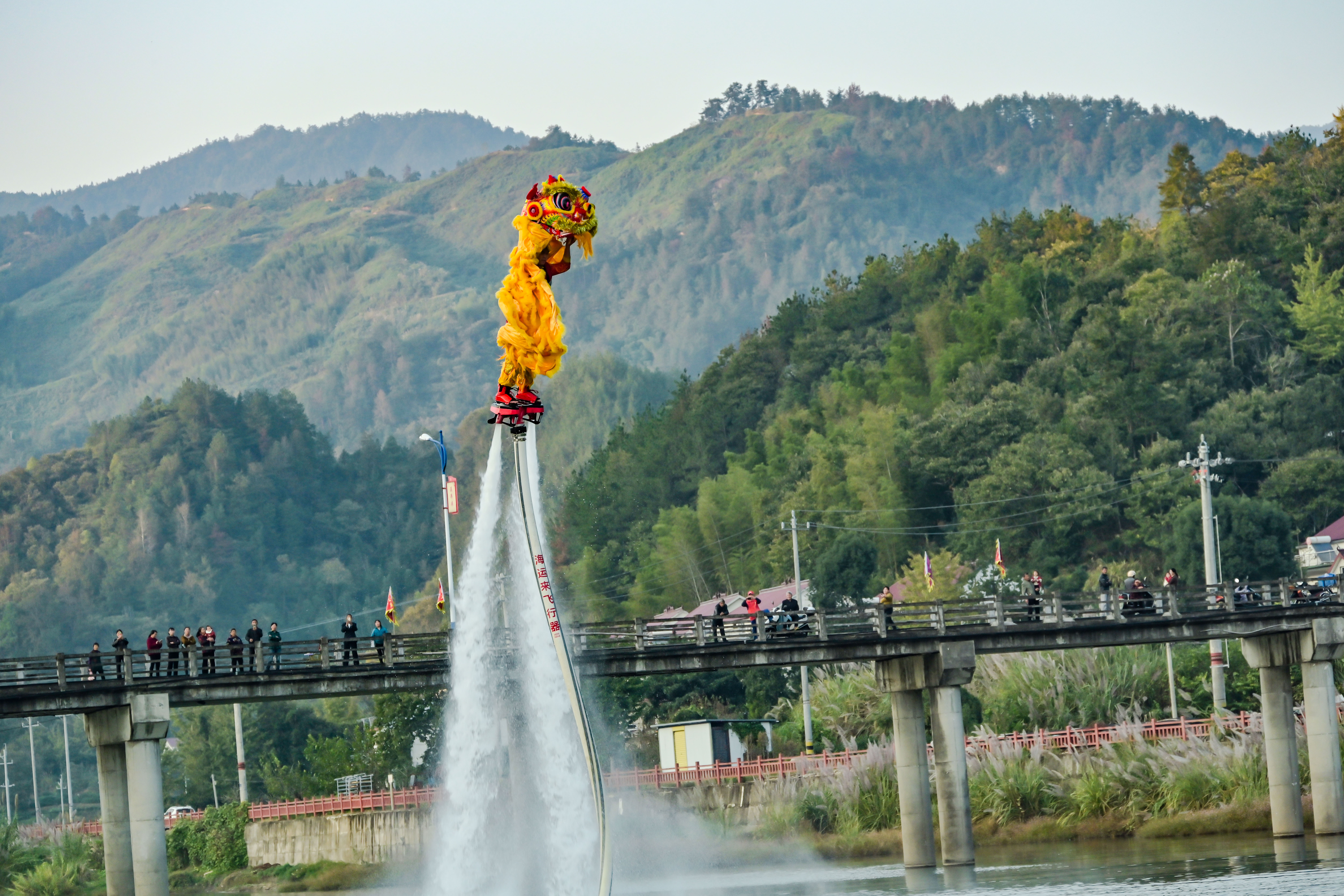 10月28日,在岳西县菖蒲镇溪沸村潜水河上的天仙河漂流景区,一场水上飞狮、水上竹竿单人漂、水上火壶精彩表演,吸引着四面八方的居民和游客前来观看。这些“轻功+独竹漂”“舞狮+钢 ...
