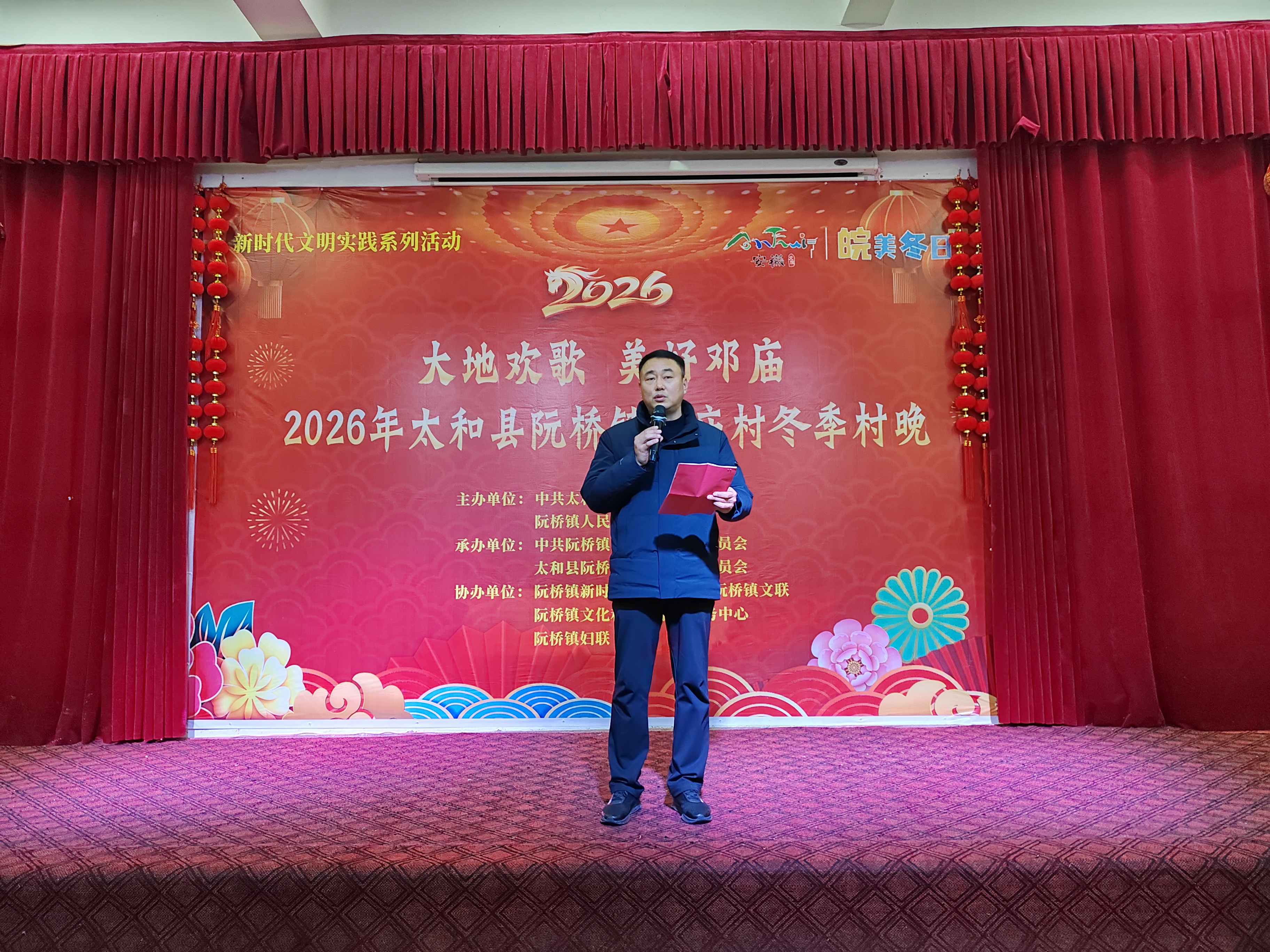 1月18日下午,太和县阮桥镇邓庙村新时代文明实践站热闹非凡,以“大地欢歌·美好邓庙”为主题的2026年冬季村晚精彩上演。这场由邓庙村自编自导自演的乡土文化盛宴,镇村干部、党员代表、群...