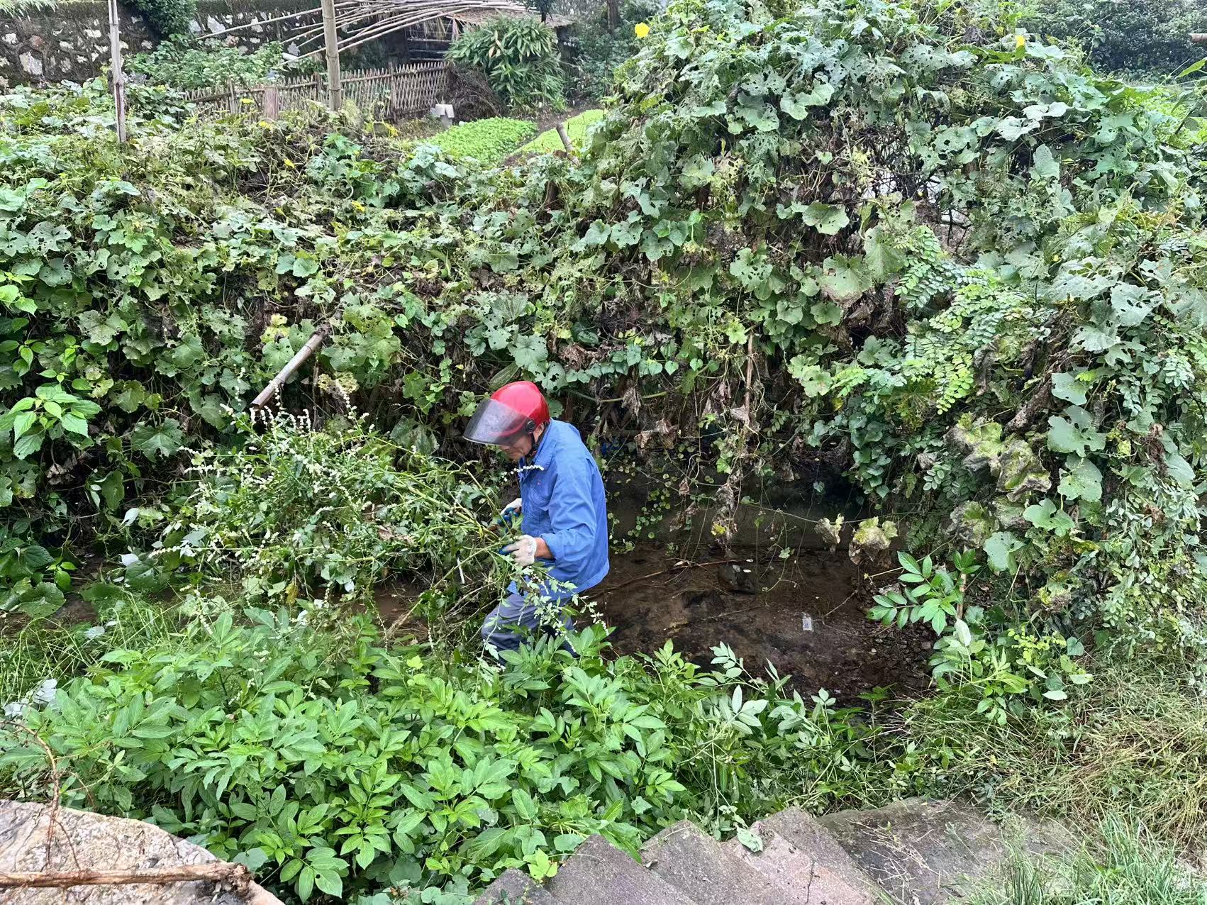 钉螺是血吸虫唯一中间宿主,灭螺就是防控关键。日前,八分村新时代文明实践站在中八山河上游区域开展灭螺行动,身着红色马甲的志愿者们成为田间最亮的风景。