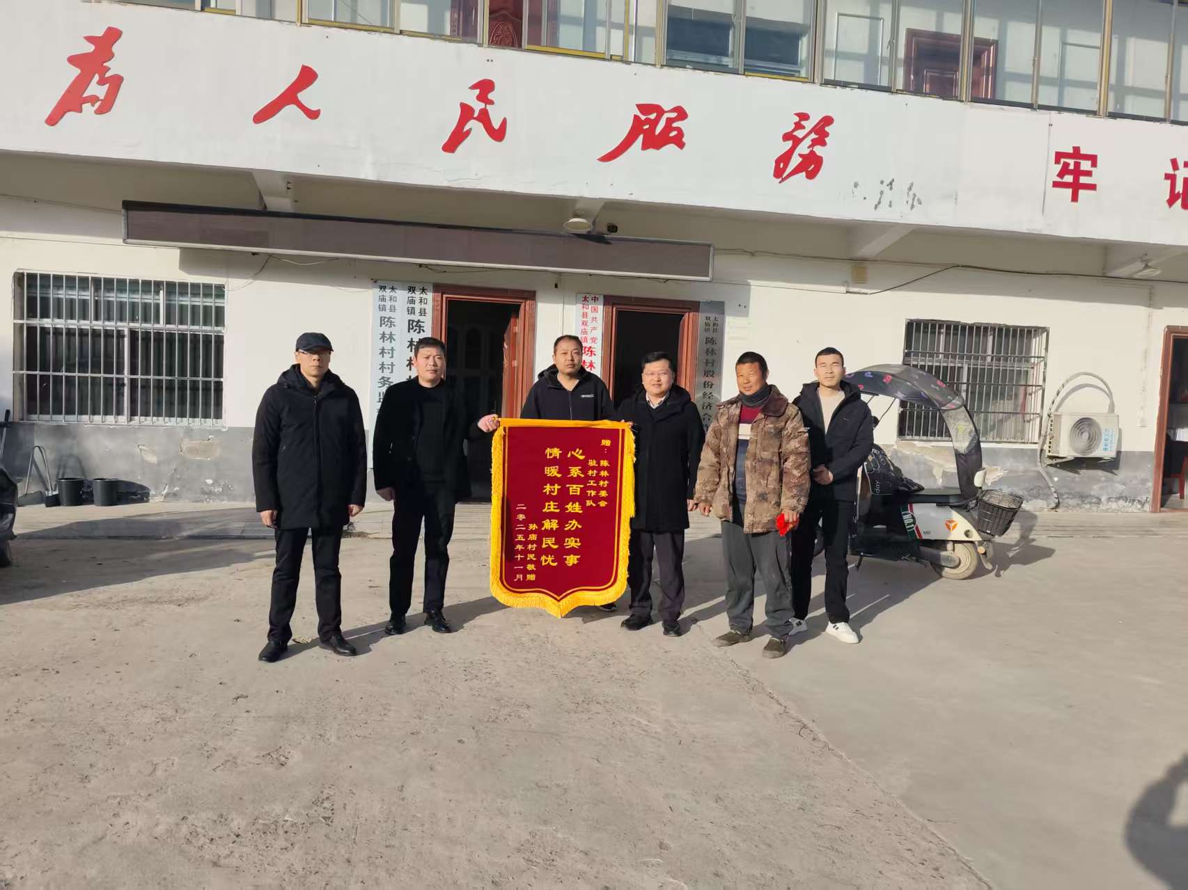 近日,太和县双庙镇孙庙村村民将一面锦旗送到陈林村驻村工作队和村两委干部手中,感谢他们解决了困扰该村许久的百亩良田涝灾难题。