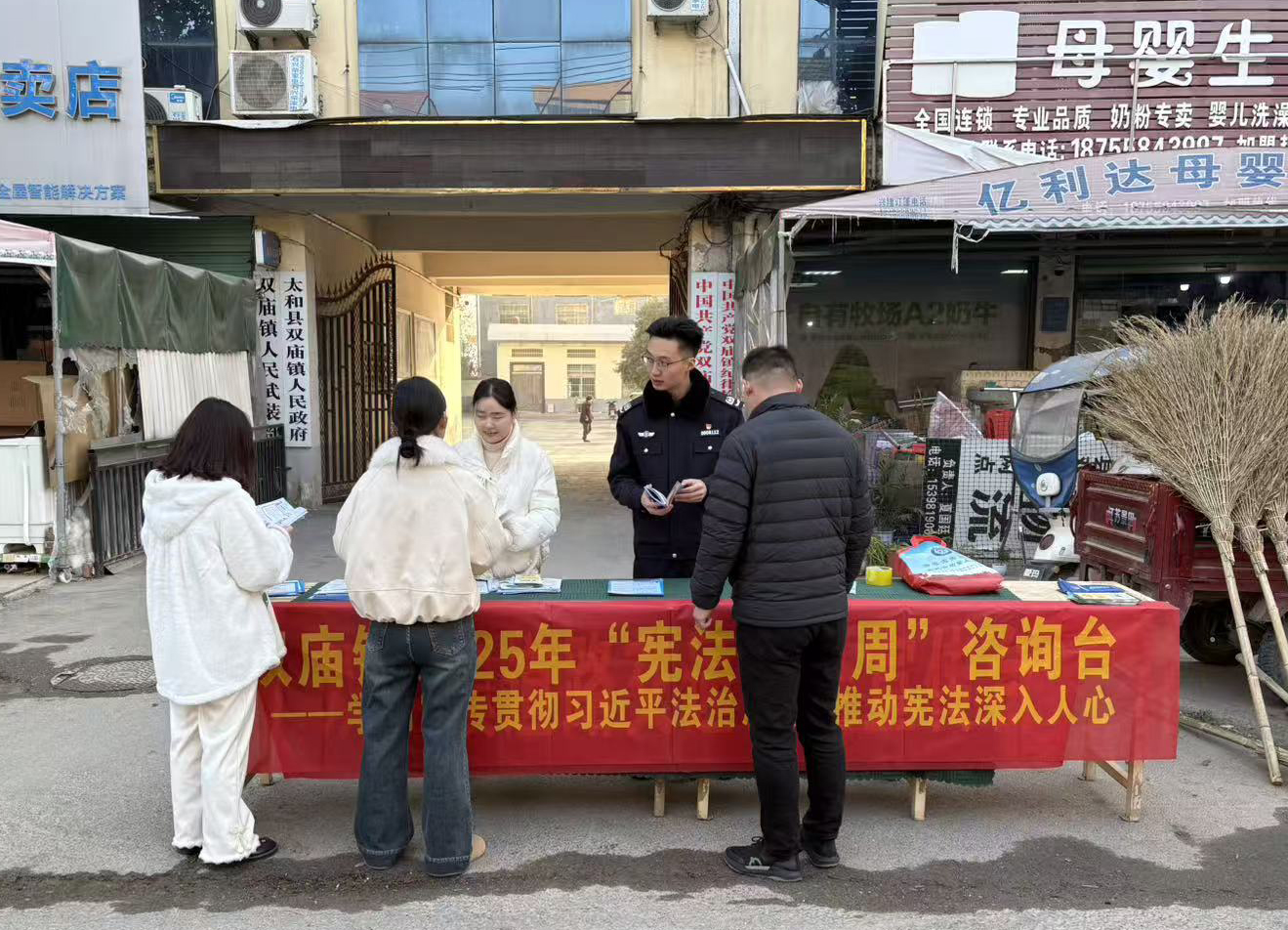 近日,太和县双庙镇联合派出所、司法所开展“宪法宣传周”集中宣传活动,活动围绕“学习宣传贯彻习近平法治思想,推动宪法深入人心”为主题精准发力,推动法治意识深入人心。