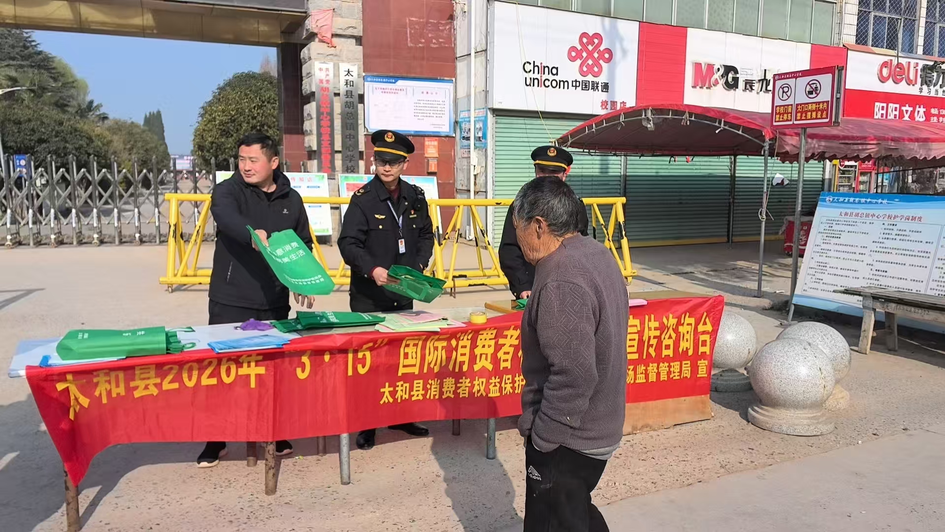 近日,太和县胡总镇联合县消费者权益保护机构,在镇中心学校门前开展“3·15”国际消费者权益日宣传咨询活动。