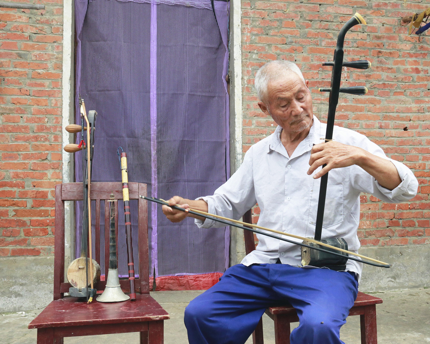 霍邱宋店有位精通4种乐器并会用鼻孔吹笛子的村民