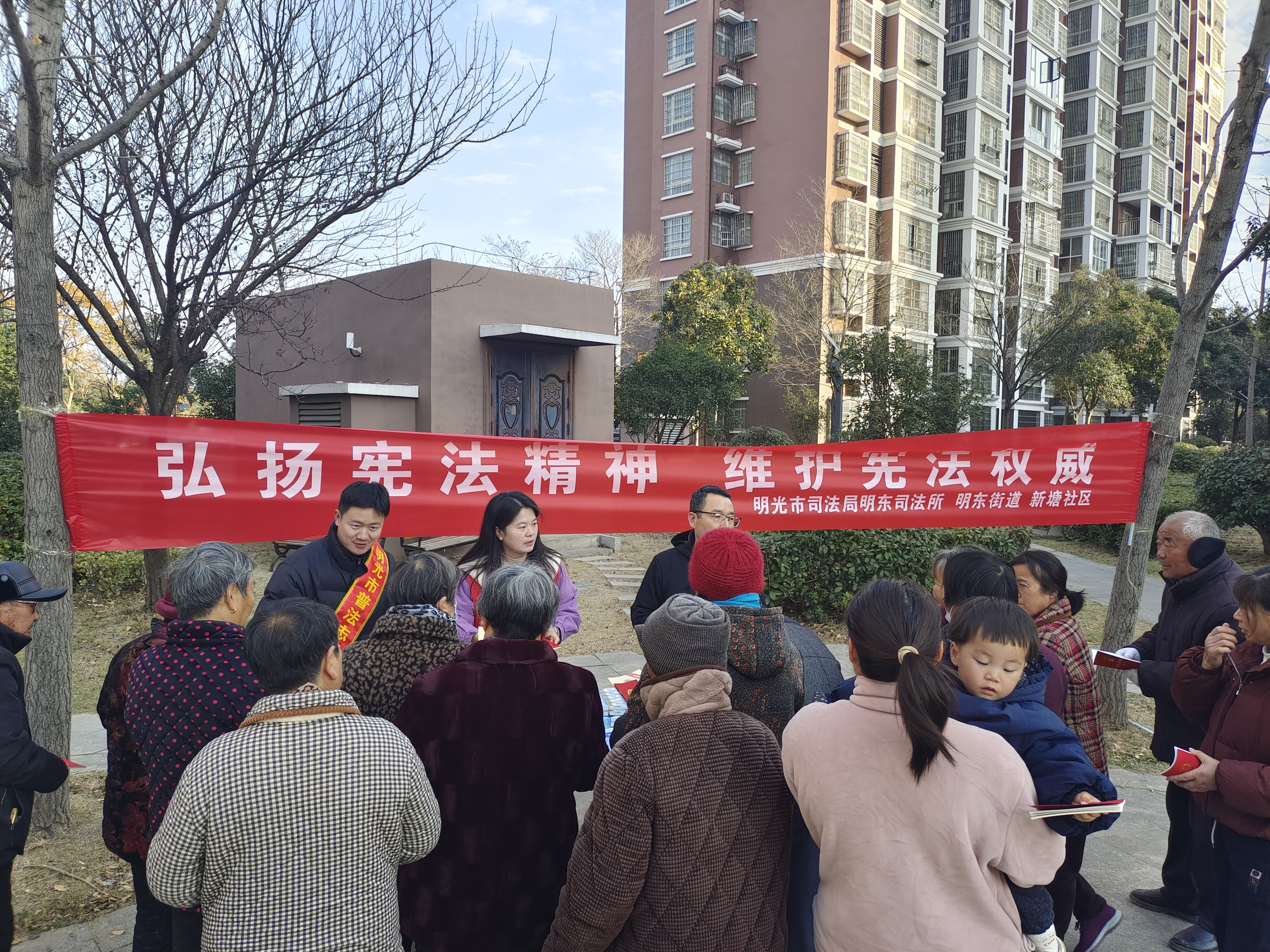 12月2日下午,明光市明东街道魏岗村工作人员走进魏岗家园小区,开展“宪法进小区法治护万家”主题宣传活动,将宪法知识与法治服务送到居民家门口,让法治理念融入日常生活。