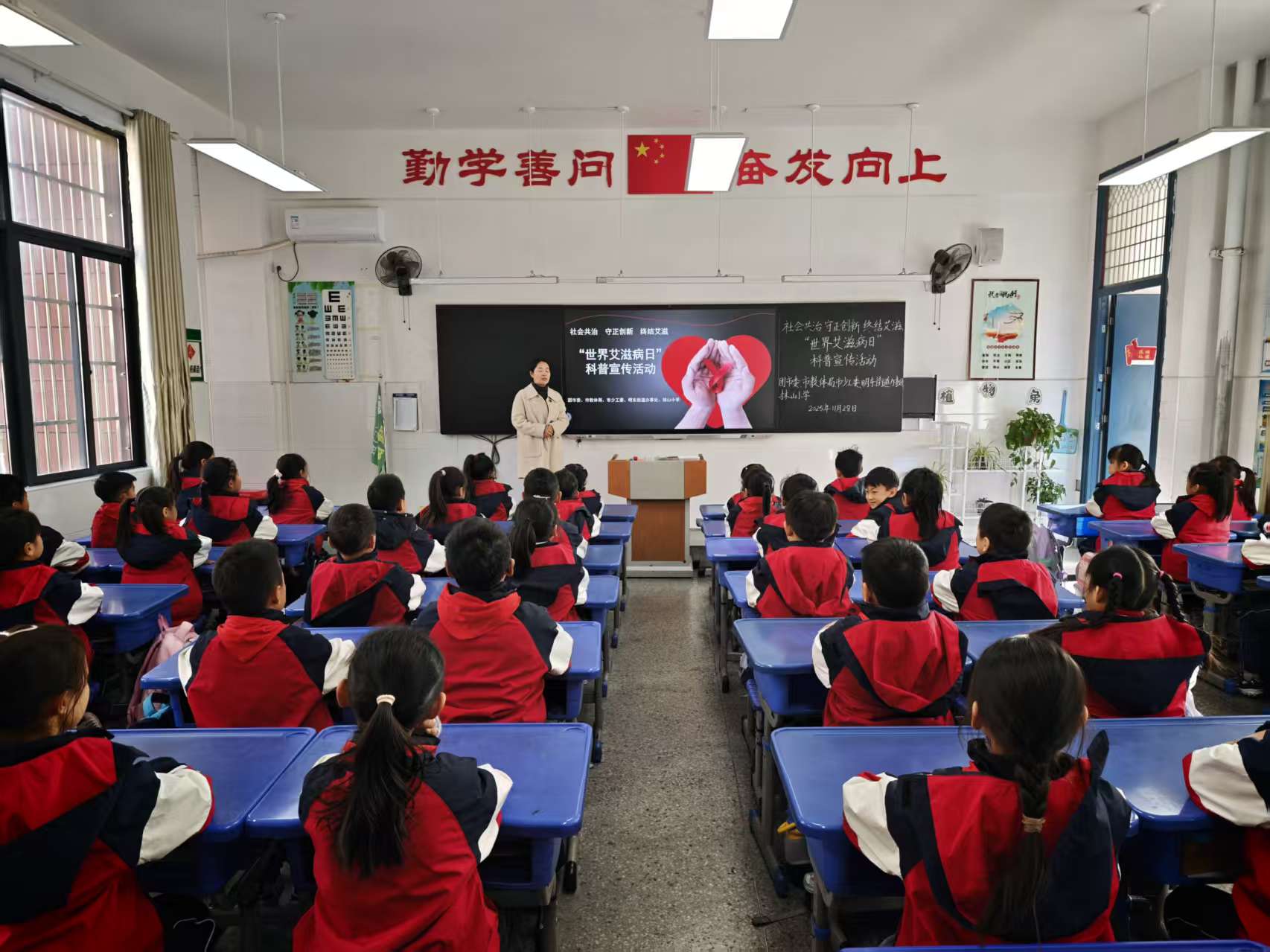 11月28日上午,在第38个“世界艾滋病日”来临之际,明光市明东街道抹山小学面向全体学生开展艾滋病防治知识科普宣传活动,旨在提升青少年科学认知与自我保护意识,筑牢健康校园防线。