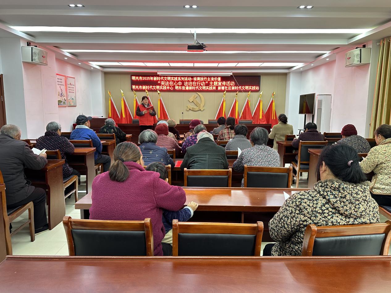 12月2日上午,明光市明东街道新塘社区新时代文明实践站组织开展了“宪法在心中法治在行动”主题宣传活动。