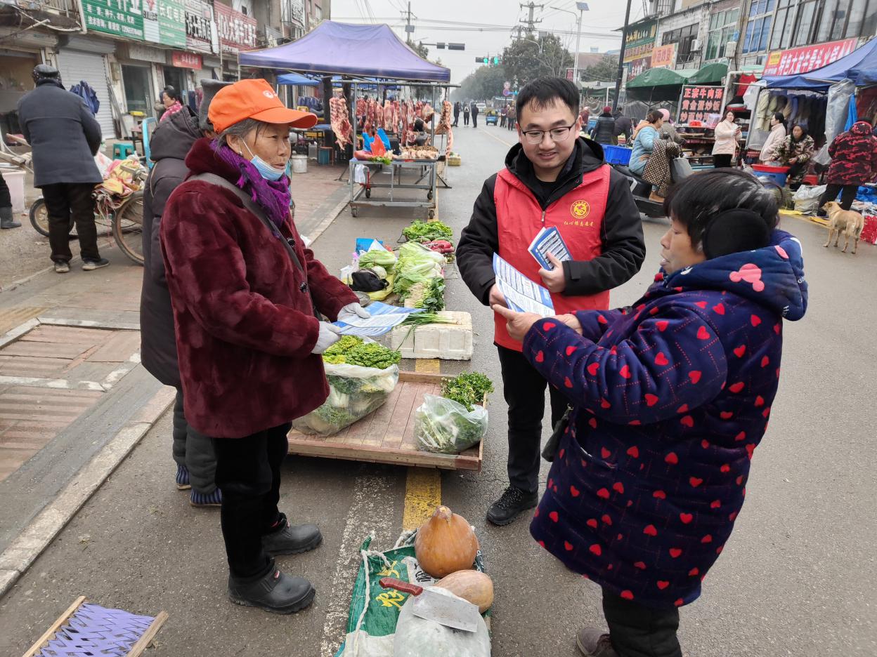12月23日,凤阳县红心镇司法所、平安法治办、新时代文明实践所在红心镇农贸市场开展习近平法治思想与民法典宣传活动。