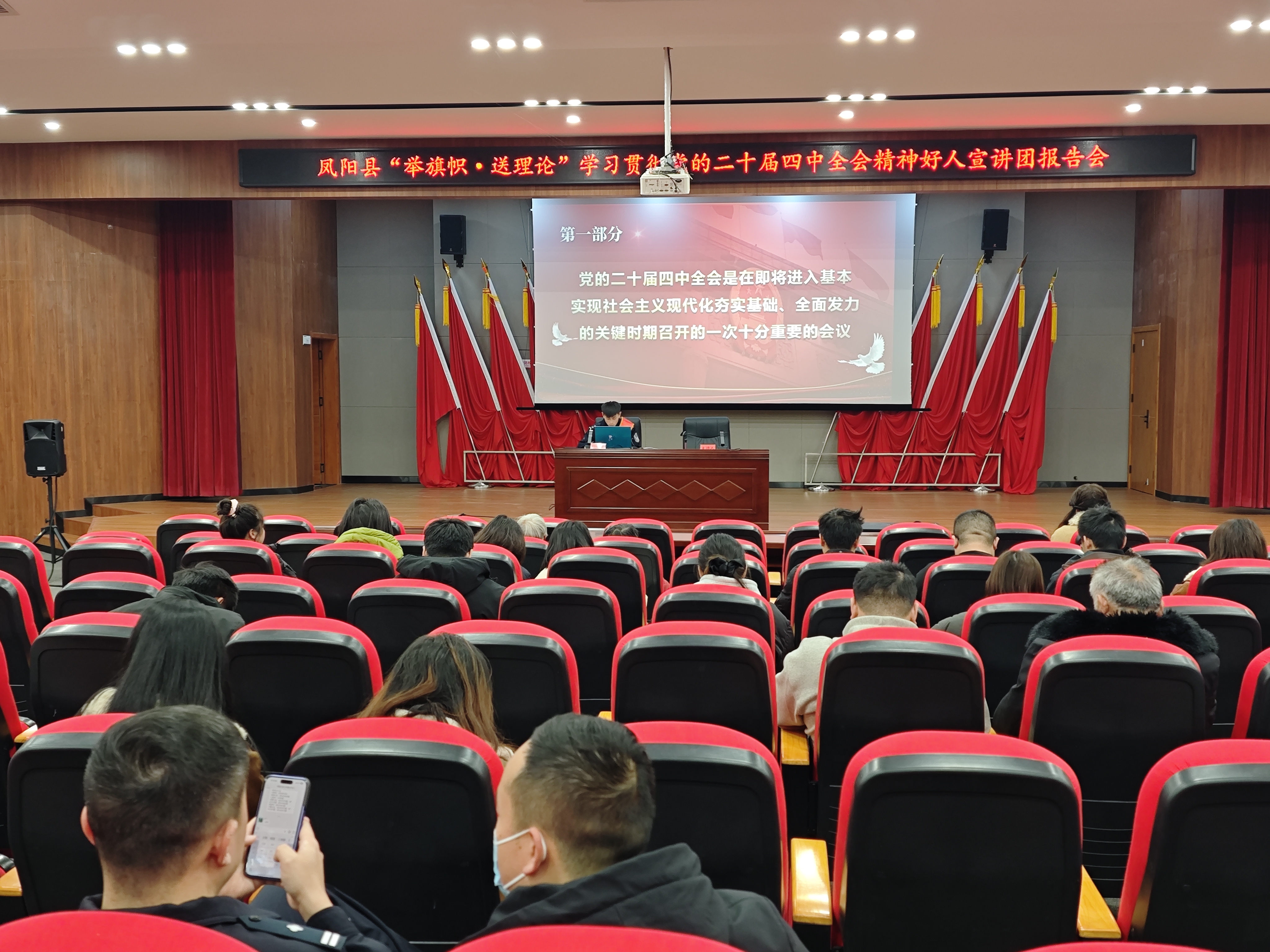 12月3日下午,凤阳县板桥镇党的二十届四中全会精神宣讲会在镇文化站召开,2024年“凤阳好人”、板桥派出所辅警衡泽丰受邀担任主讲人,镇村干部、党员代表及群众代表参加会议。