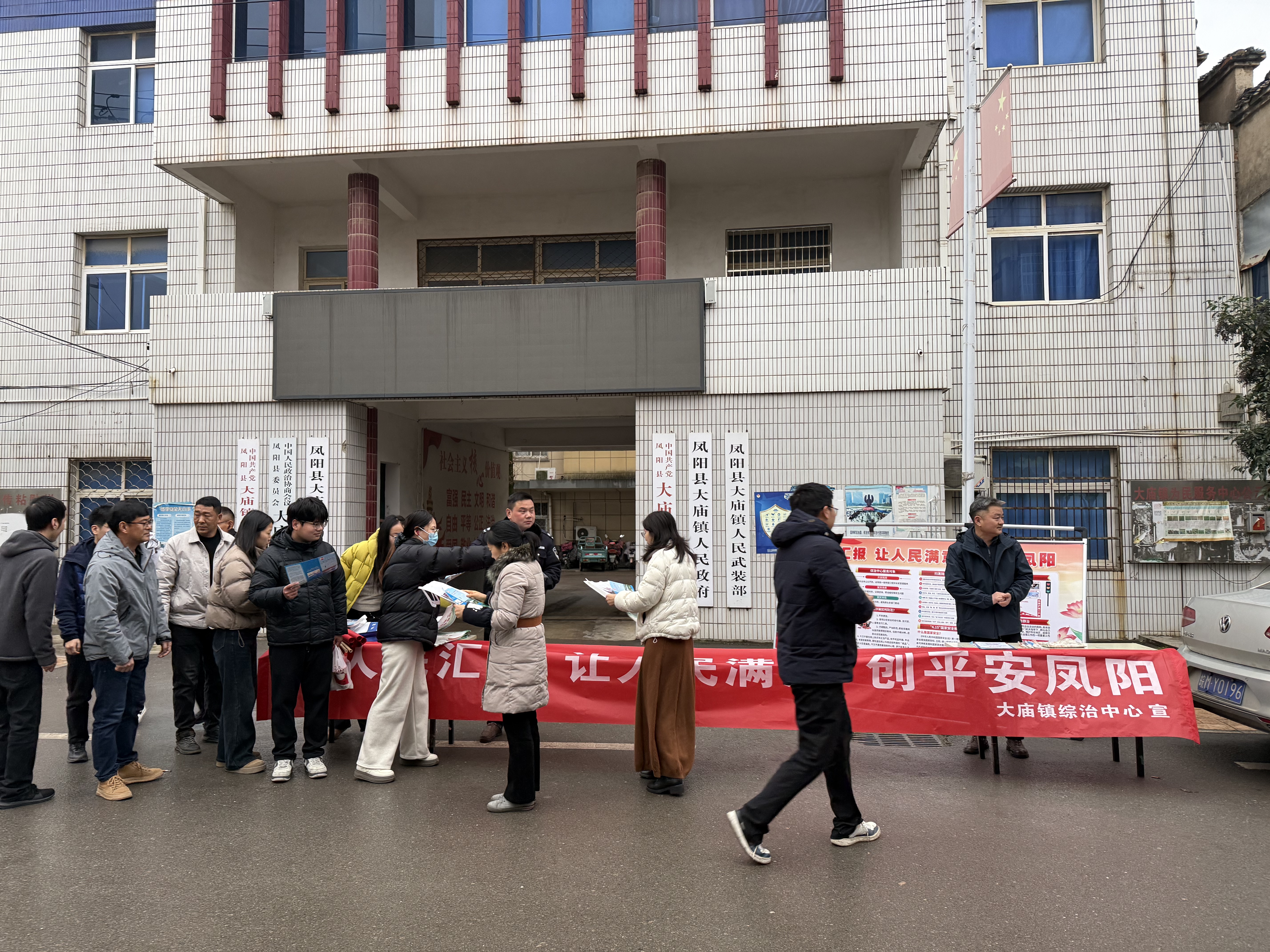 为深入推进平安建设工作,切实提升辖区居民的安全意识和自我防护能力,12月23日,凤阳县大庙镇综治中心联合司法所、派出所、应急办、消防站、市监所、妇联等多部门力量,在镇中心街道 ...