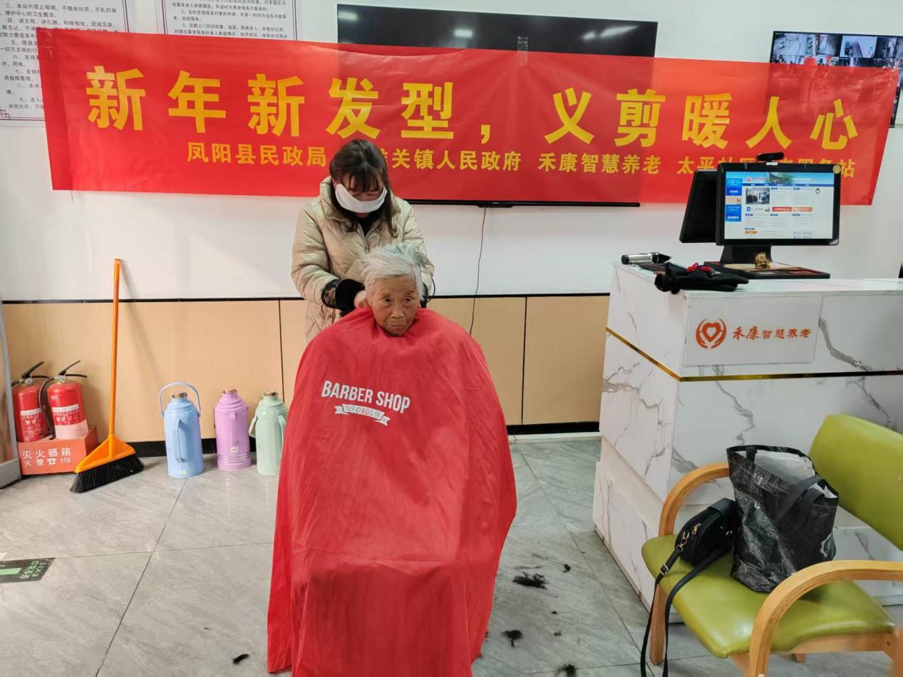 近日,凤阳县临淮关镇太平社区养老服务站开展“新年新发型,义剪暖人心”便民服务主题活动,为辖区的老年人提供新年公益义剪、免费测量血压等便民服务。