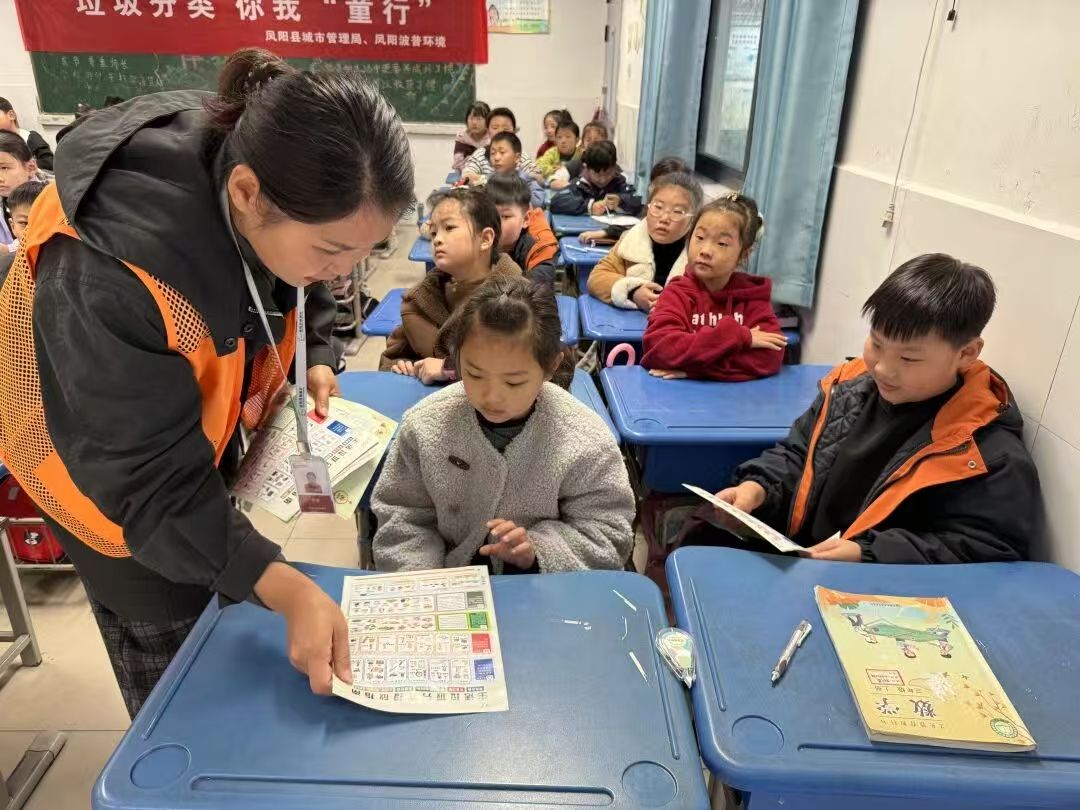 12月31日下午,凤阳县中都街道凤凰社区联合凤阳县城市管理局、凤阳波普环境公司在悦祥湾小区小学举办“垃圾分类你我‘童’行”主题活动,通过趣味讲解与互动实践,让垃圾分类理念扎根童心。