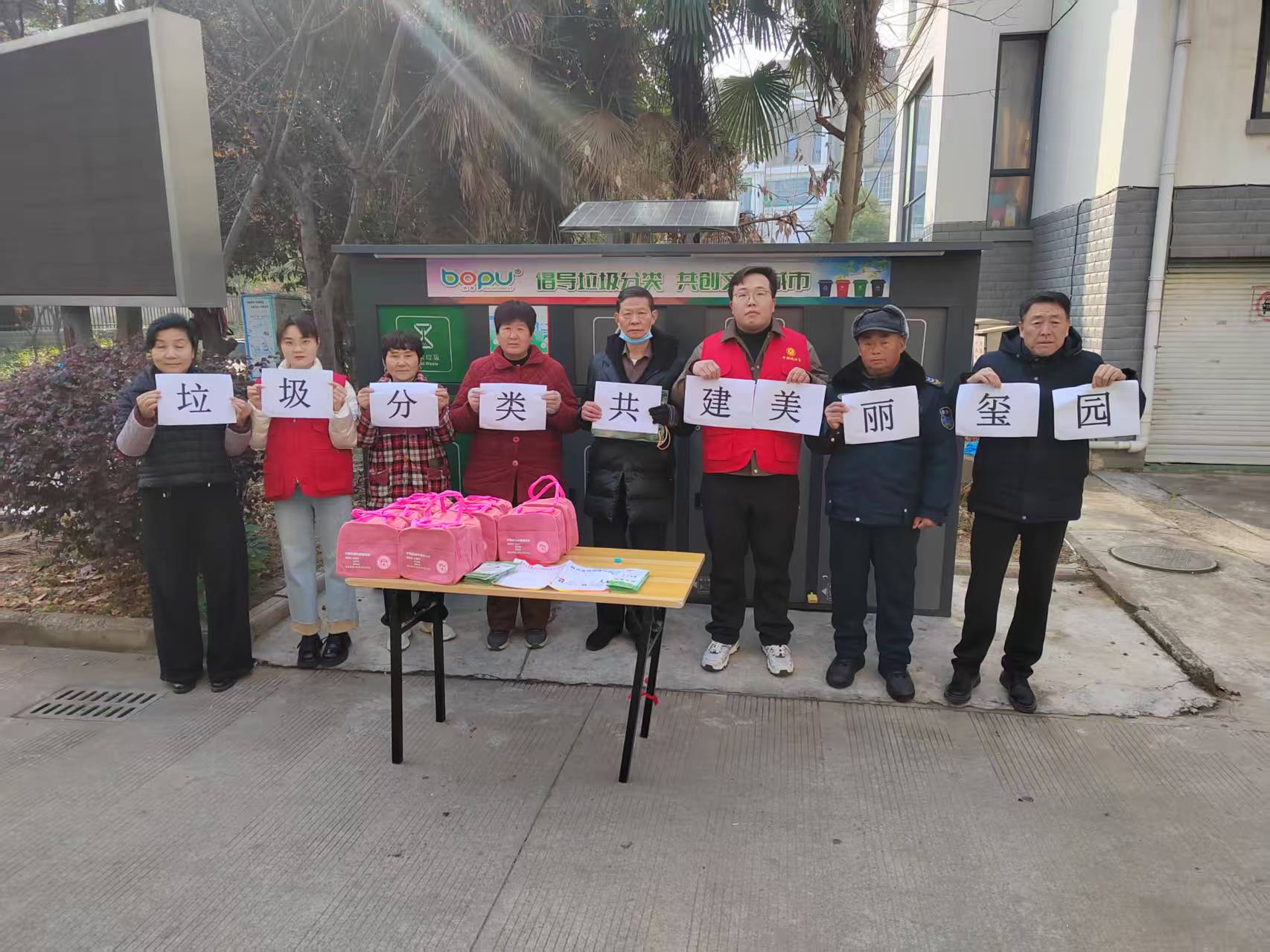 12月30日上午,凤阳县中都街道中都城社区在玺园小区组织开展以“垃圾分类,共建美丽玺园”为主题的垃圾分类宣传活动。