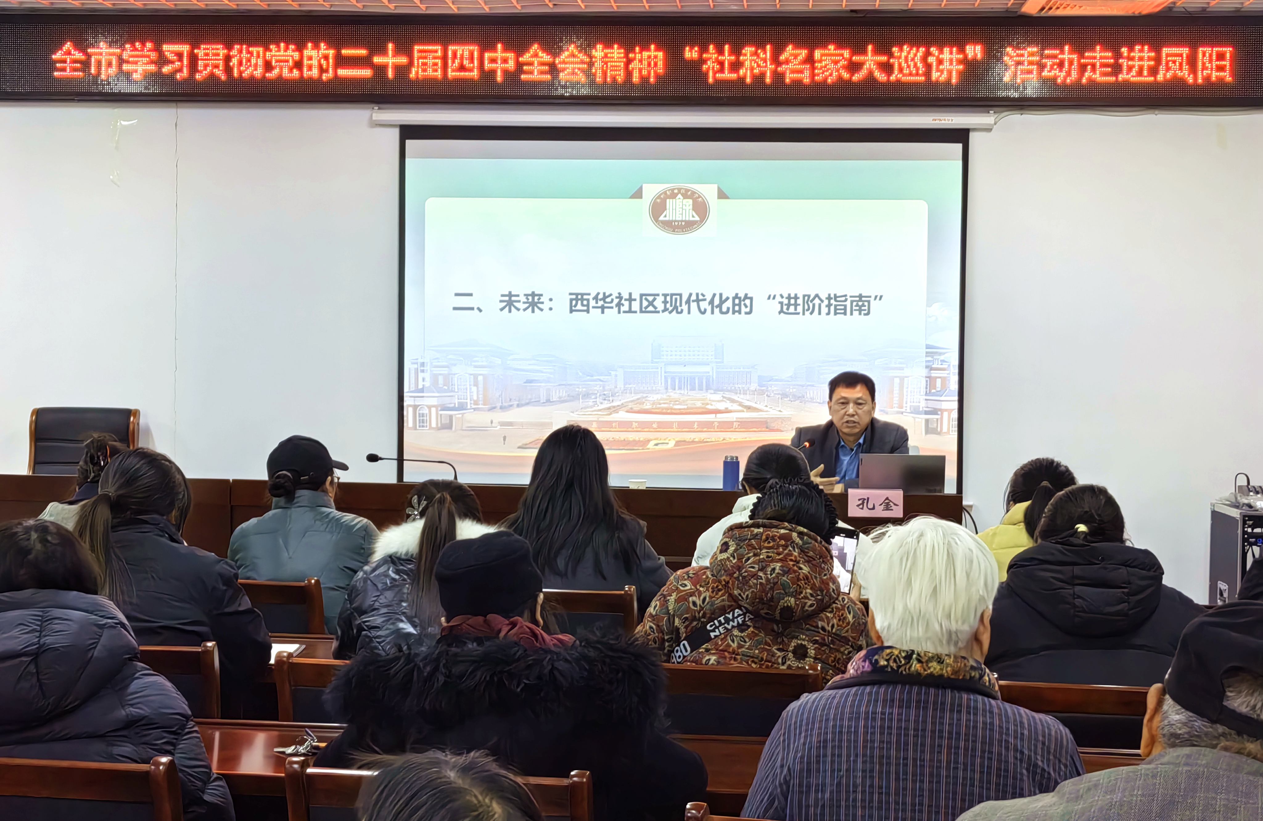 12月9日下午,滁州市学习贯彻党的二十届四中全会精神“社科名家大巡讲”活动在凤阳县中都街道西华社区举行。