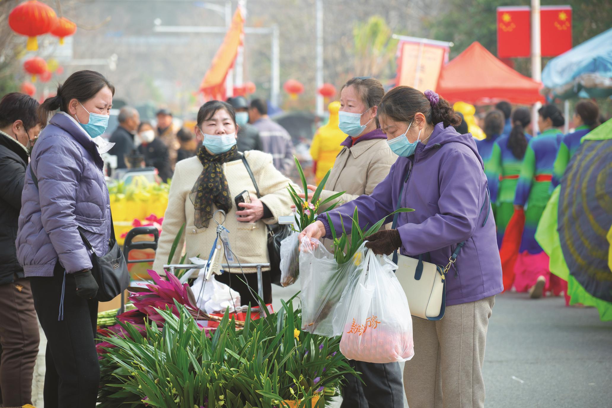 3月21日,群众在庙会上购买苗木花卉。(毕鸿摄)
