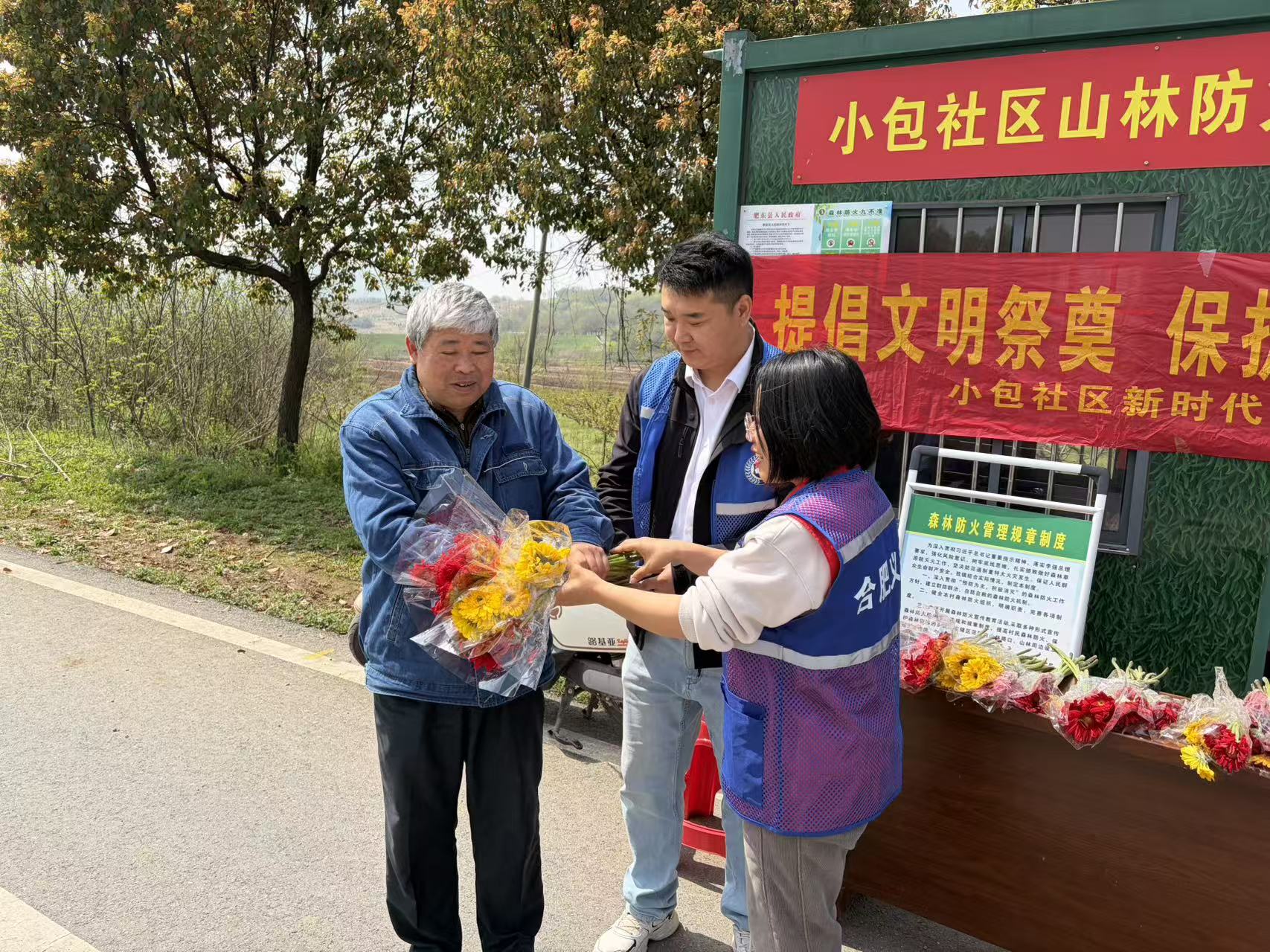 近日,肥东县包公镇小包社区依托山林防火服务点,组织开展“提倡文明祭奠 保护生态环境”主题宣传活动,以实际行动引导居民践行文明祭扫,守护绿水青山。