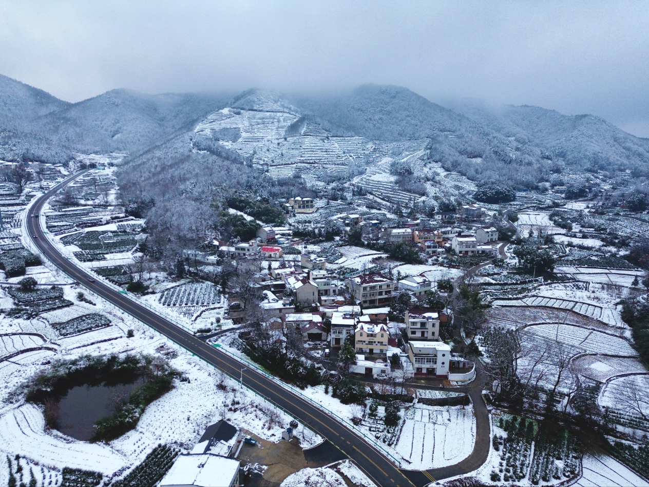 1月1日,新年伊始,庐江县迎来首场瑞雪。纷纷扬扬的雪花为这片土地披上洁白盛装,远山近岭层林尽披白纱,山峦覆雪后线条愈发柔和绵延,宛如一幅流动的水墨画卷。