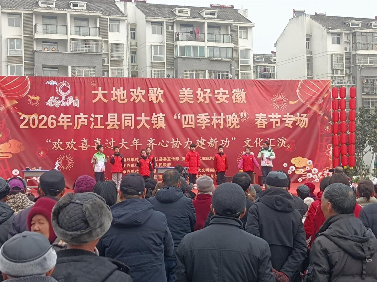 腊月的寒风吹不散相聚的热情。1月28日下午,庐江县同大镇农贸市场内欢声如潮、暖意融融,“欢欢喜喜过大年齐心协力建新功”2026年同大镇“四季村晚”在这里热闹开演。一场融合传统韵味、青...