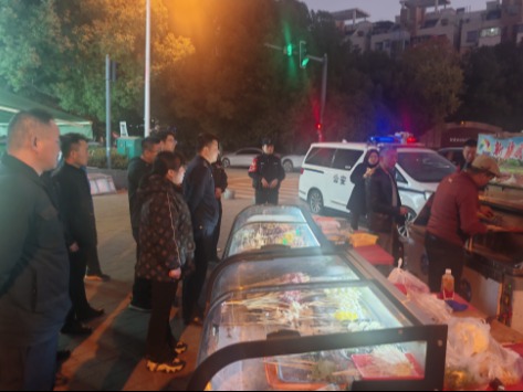 11月27日晚,合肥市蜀山区荷叶地街道绿怡居社区联合城市管理部、新疆驻皖办事处、荷叶地派出所民警,对辖区新疆烧烤占道经营,油烟扰民进行劝离。