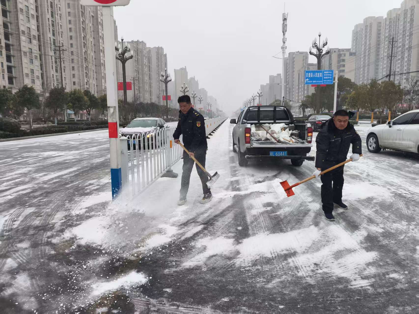 灵璧县城管局全力开展清雪除冰作业