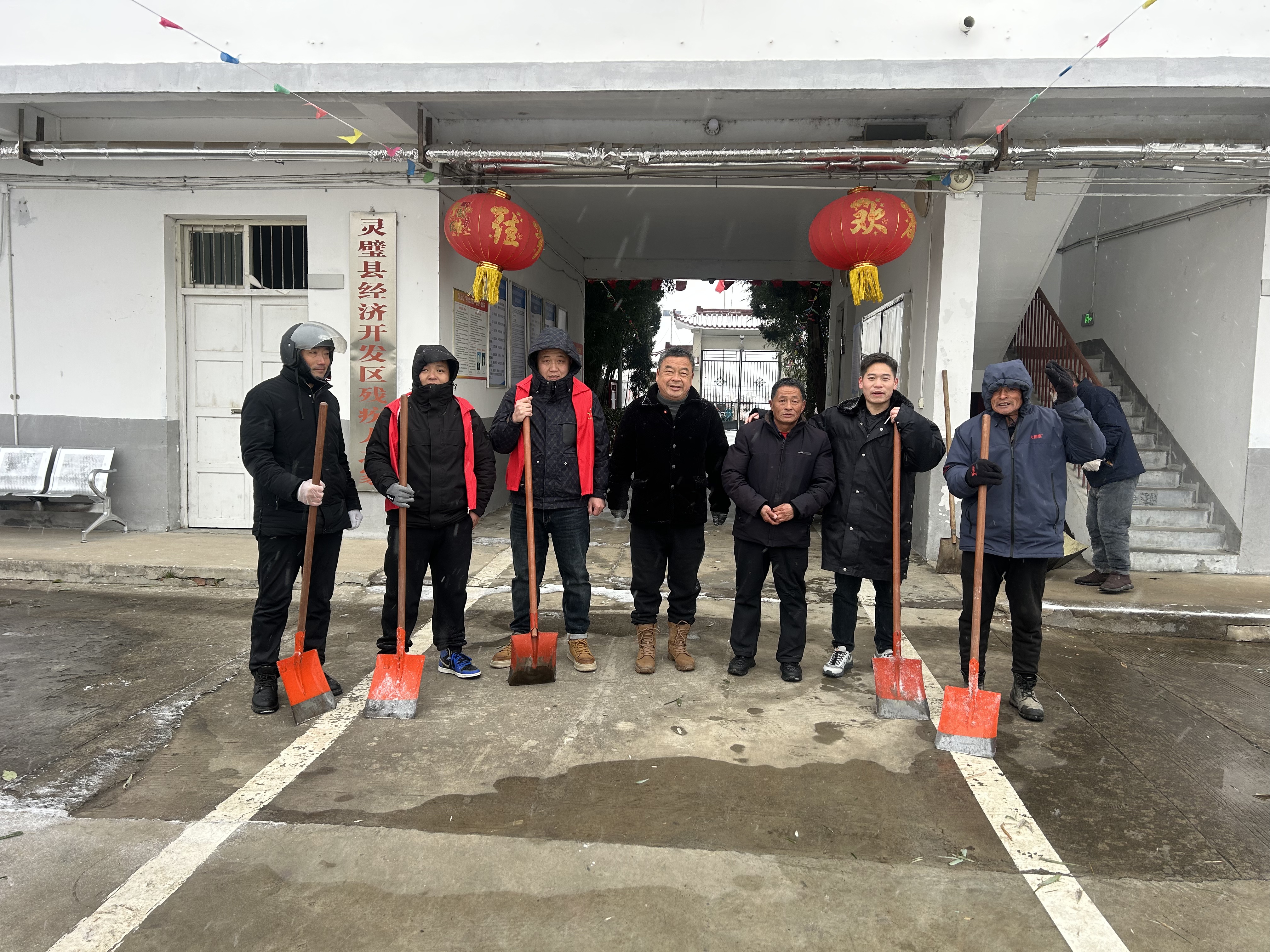 1月19日,灵璧县灵城镇叶庙社区“两委”干部及网格员扛着铁锹、拿着扫帚,踩着积雪匆匆赶到叶庙敬老院进行扫雪除冰工作。