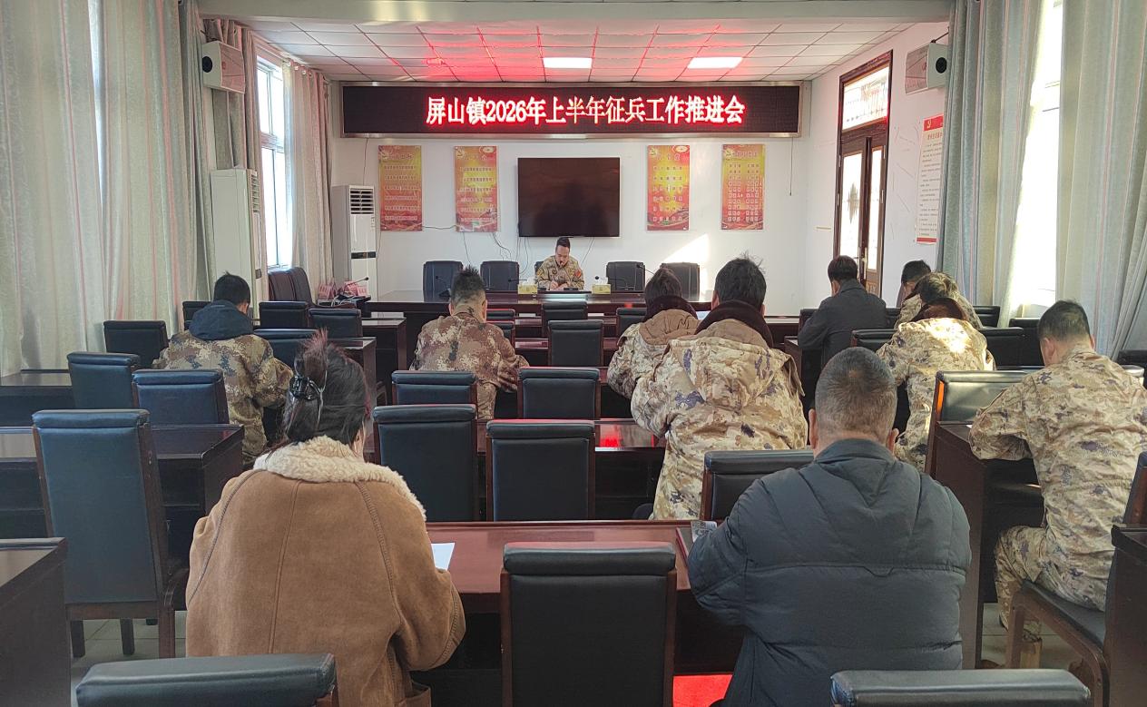 12月25日,泗县屏山镇召开2026年上半年征兵工作推进会,镇武装部、各村民兵营长、退役军人服务站负责同志参加会议。
