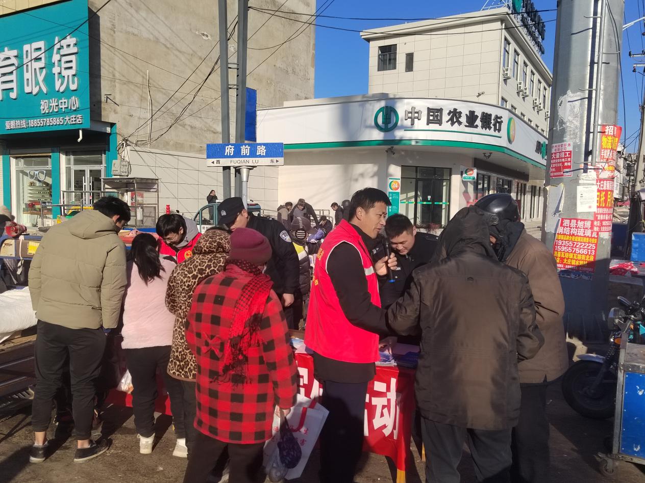 近日,泗县大庄镇平安法治办联合派出所、司法所等单位,依托逢集人员密集的有利契机,集中开展平安建设宣传月活动,推动平安法治知识走进千家万户。