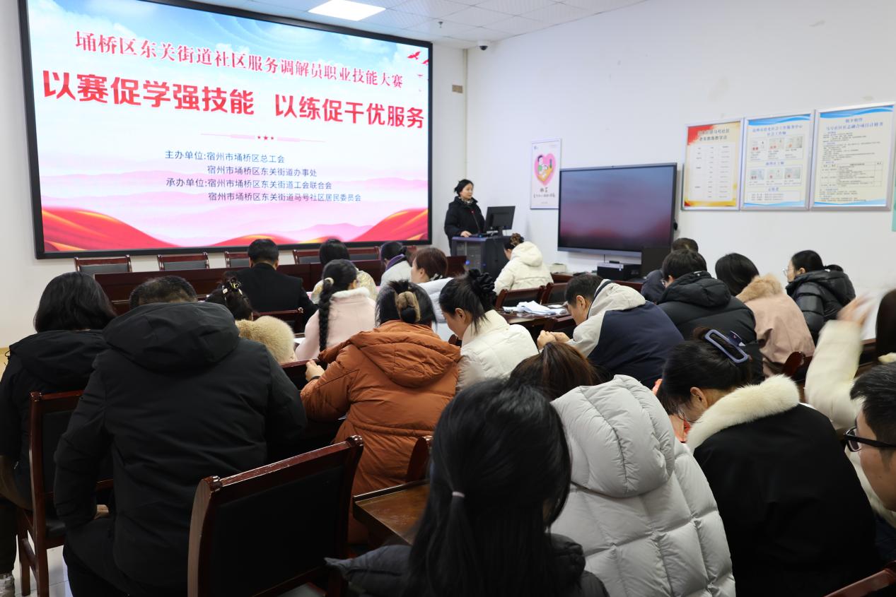 2月6日,由宿州市埇桥区总工会与东关街道联合举办的“埇桥区社区服务调解员职业技能大赛”在马号社区举行。来自东关街道各社区的25名专职、兼职社区服务调解员同台竞技,以专业能力比拼, ...