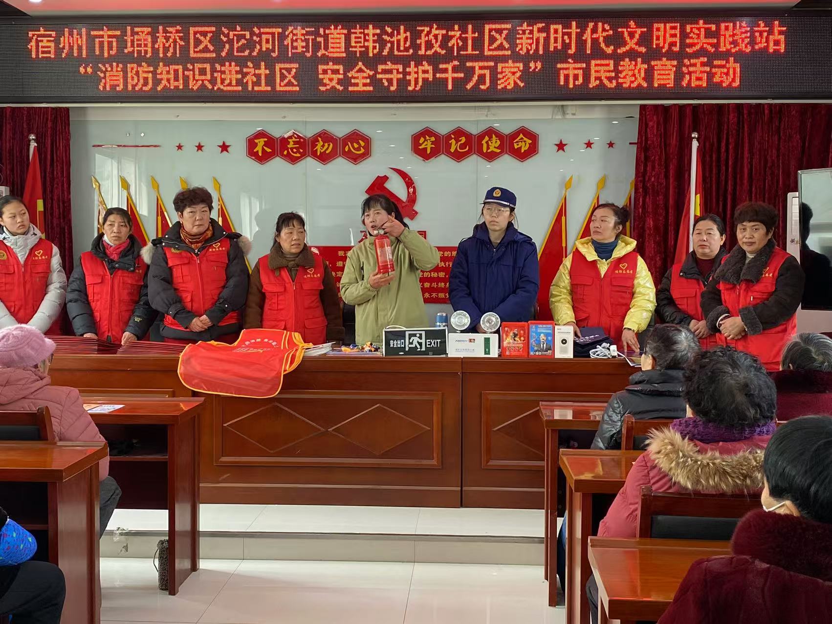 近日,宿州市埇桥区沱河街道韩池孜社区在新时代文明实践站,组织开展"消防知识进社区 安全守护千万家"市民教育活动,切实增强居民消防安全意识,筑牢社区安全防线。