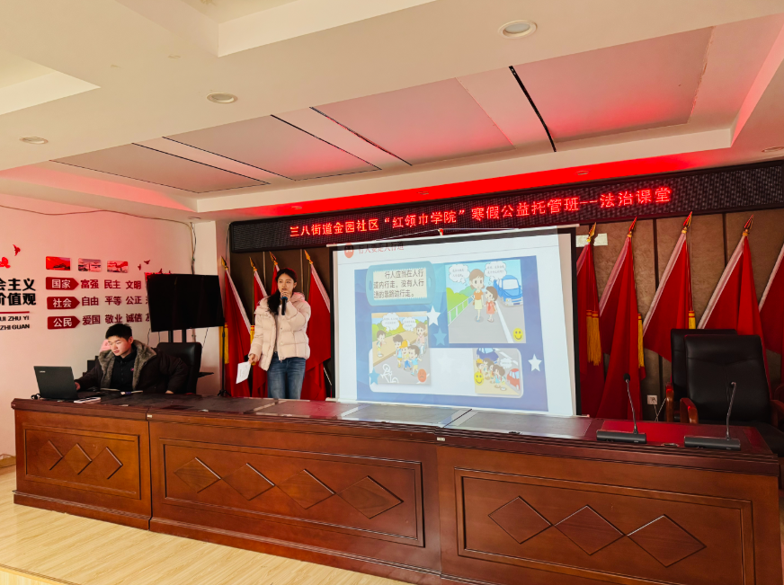 金园社区:“红领巾学院”寒假公益托管班交通安全小课堂开讲