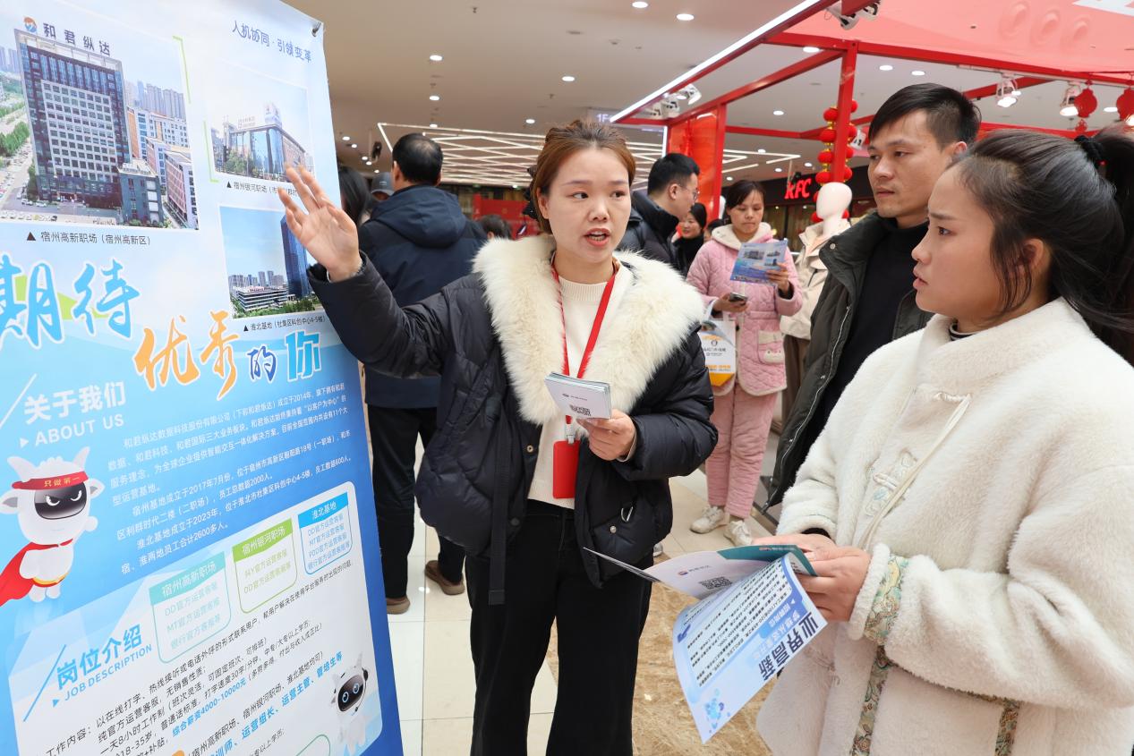 2月28日,由宿州市埇桥区总工会、人社局、退役军人事务局、妇联联合主办的埇桥区“工会送岗位乐业在江淮”2026年工会就业服务招聘会在万达广场火热举办。