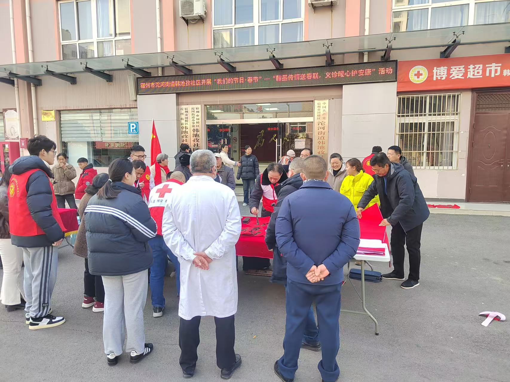 近日,宿州市埇桥区沱河街道韩池孜社区新时代文明实践站联合中煤矿建总医院及书法爱好者,在社区广场举办“我们的节日·春节——翰墨传情送春联 义诊暖心护安康”主题活动,将浓浓的 ...