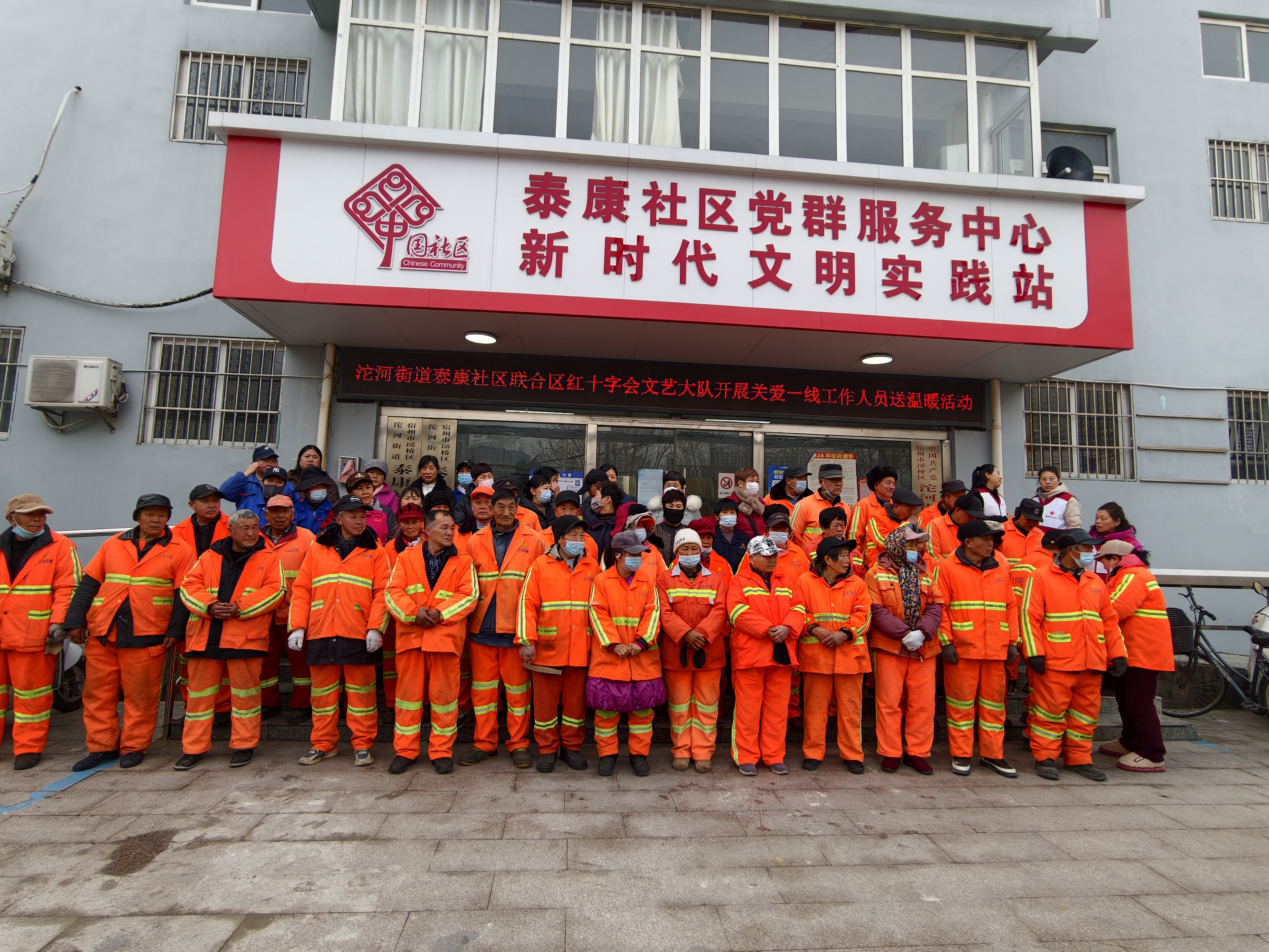 近日,宿州市埇桥区沱河街道泰康社区联合区红十字会文艺大队,开展关爱户外工作者送温暖活动。