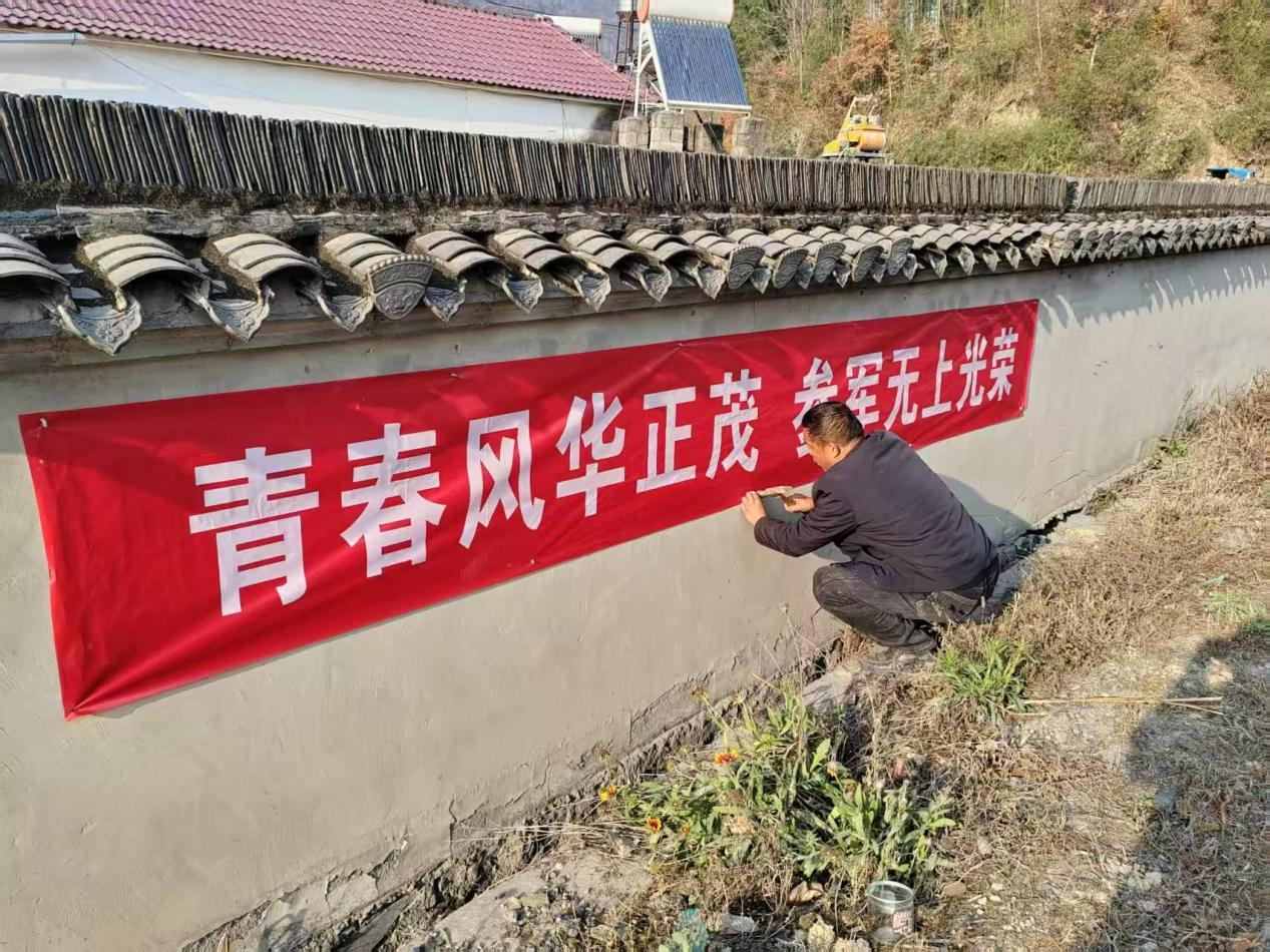 “这时间真快,我退伍都8年了,想想曾经部队的日子,还感觉近在眼前!”近日,旌德县孙村镇玉溪村村头墙边,村干部郑仙杰正蹲在地上细心固定红色征兵宣传横幅,“青春风华正茂参军无上光荣...