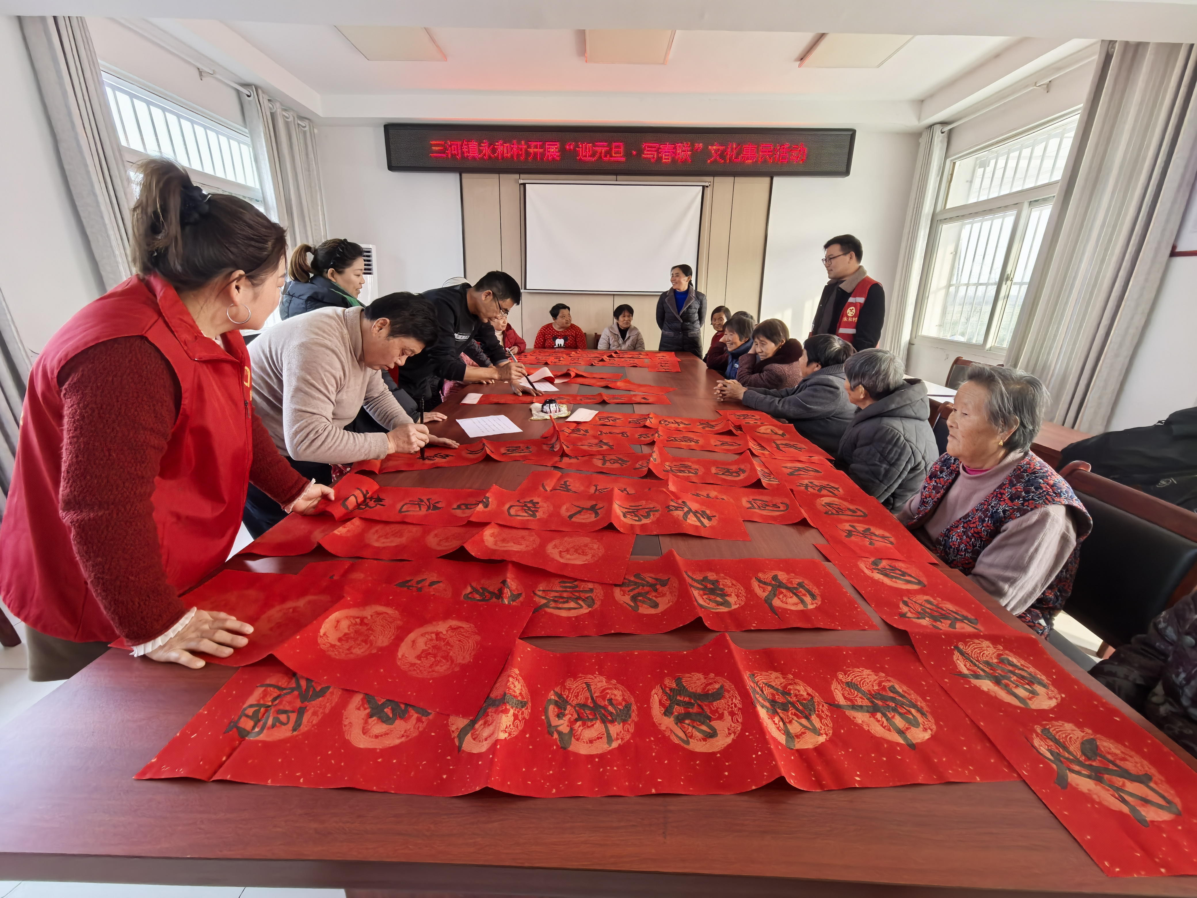 为弘扬传统文化,营造喜庆祥和的新年氛围,近日,肥西县三河镇永和村组织本村书法爱好者,开展“迎元旦·写春联”文化惠民活动,将节日祝福融入笔墨,送到群众手中。