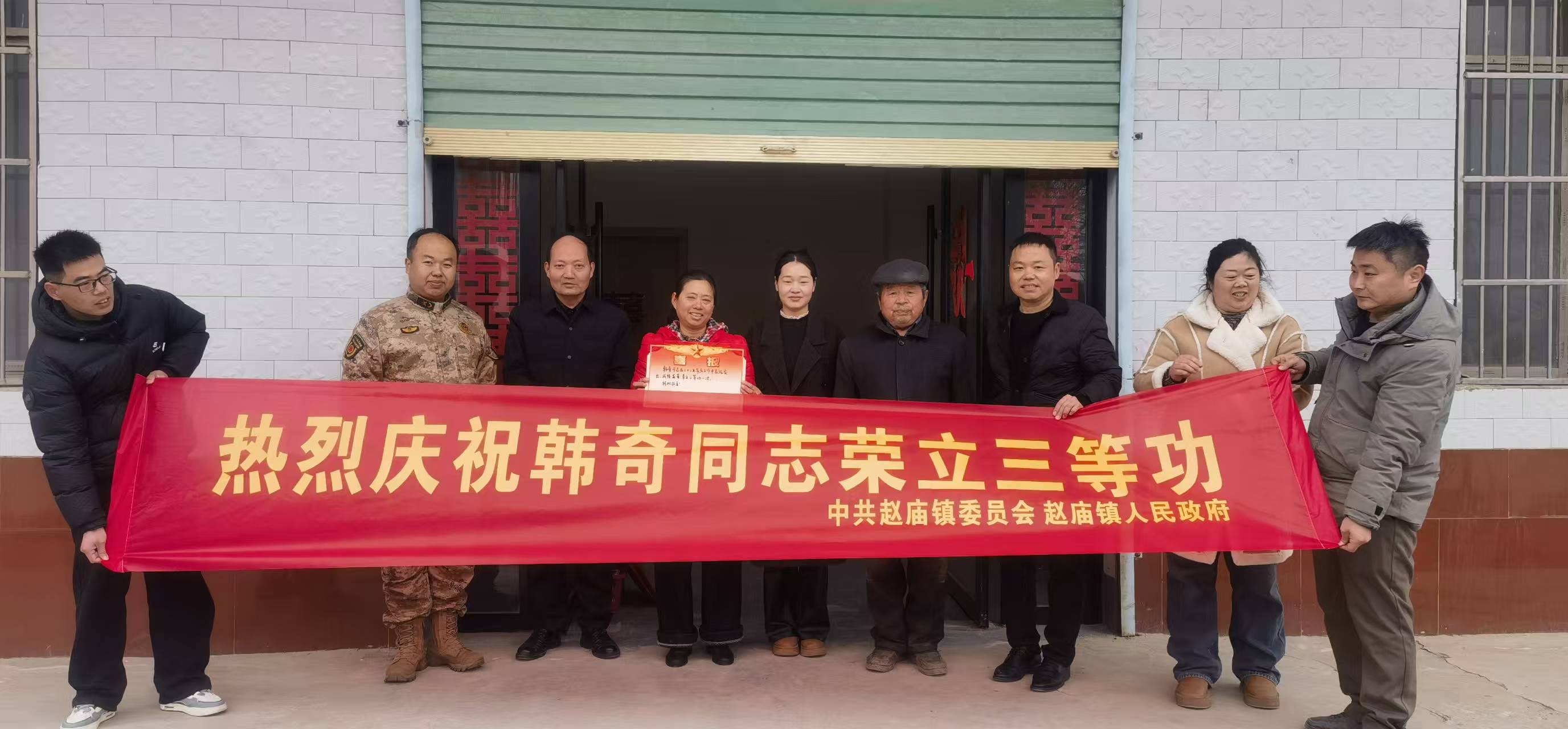 近日,太和县赵庙镇组织工作人员,专程来到韩奇、曹宇、黄凯三位荣立三等功的现役军人家庭,上门送喜报、送关怀、送祝福,把党和政府的温暖与敬意送到军属身边,让军人军属切实感受到尊崇 ...