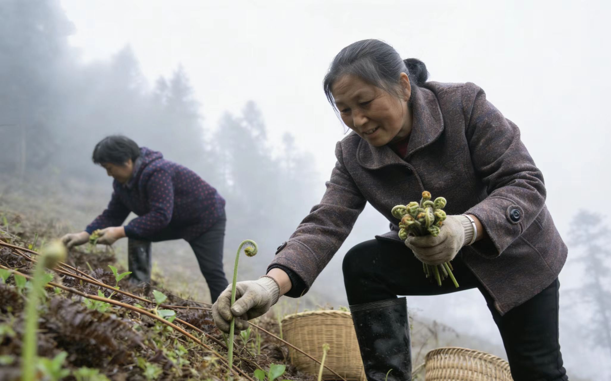旌德县:春日山野绿,蕨菜青青变“金芽”