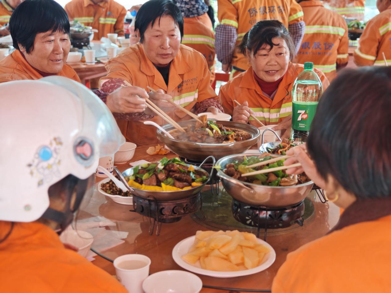 3月3日,元宵佳节,150余名环卫工人身着工作服,齐聚在旌德县港德苑小区内的广场上。他们围坐在圆桌旁,一边品尝可口的饭菜,一边聊着家常,现场欢声笑语不断,洋溢着温馨祥和的节日氛围。...