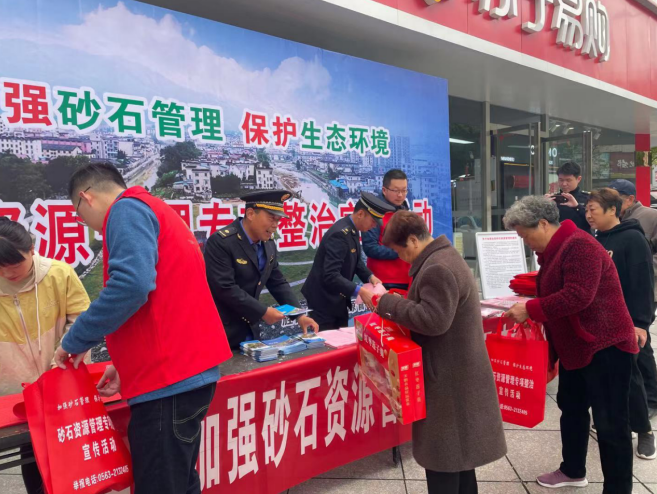 4月9日,旌德县城管局联合县砂石办在城区解放北路开展了法制宣传活动。