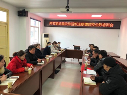 1月11日下午,旌德县文旅局组织召开了全县星级旅游饭店两节期间疫情防控业务培训会,全县星级旅游饭店负责人及文旅局执法大队全体人员参加培训。