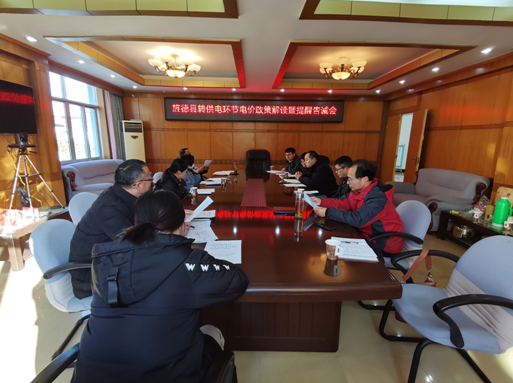 1月13日,旌德县发改委、市场监管局、供电公司联合召开转供电环节电价政策解读暨提醒告诫会。县各转供电主体参加会议。